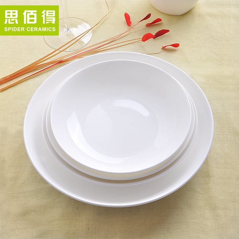 순백색 가정용 당산 본 중국 뜨거운 수프 접시 깊은 접시 시리즈 원형 밥 접시 세라믹 식기 접시 접시