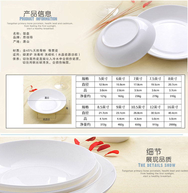 순백색 가정용 당산 본 중국 뜨거운 수프 접시 깊은 접시 시리즈 원형 밥 접시 세라믹 식기 접시 접시스토어 가기