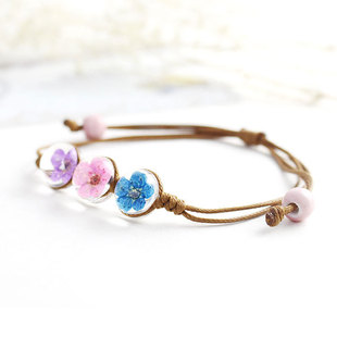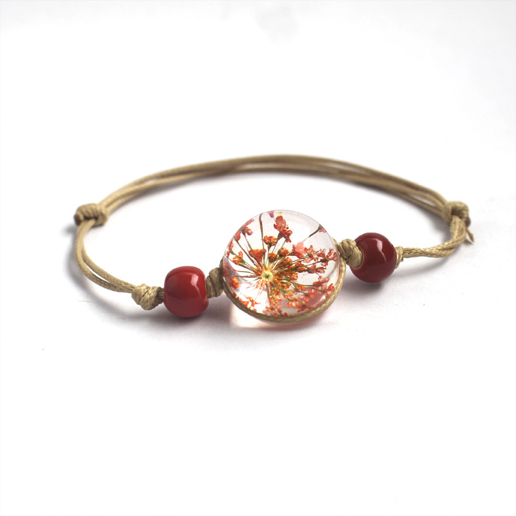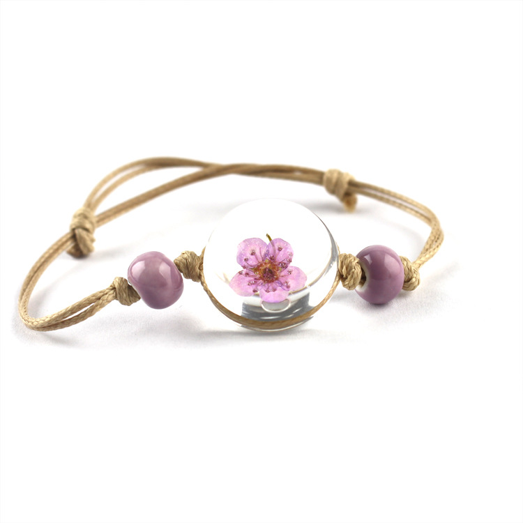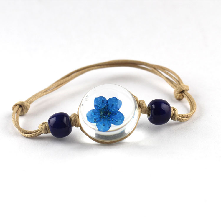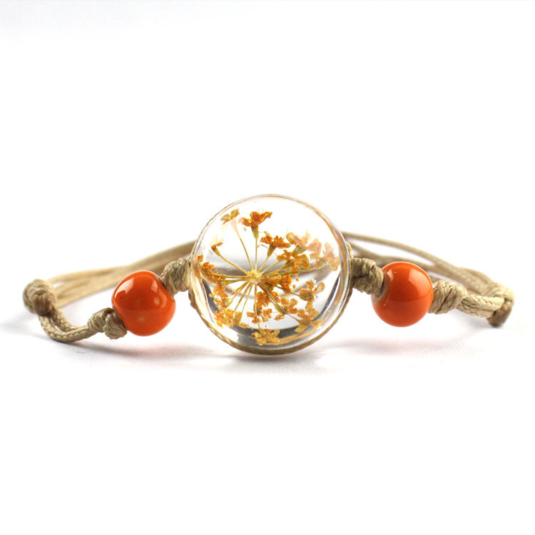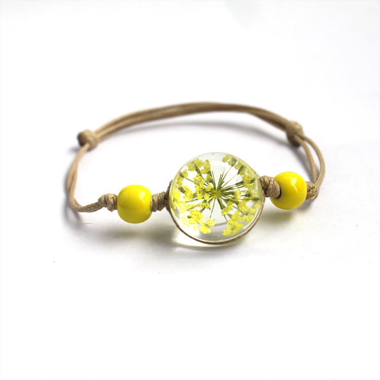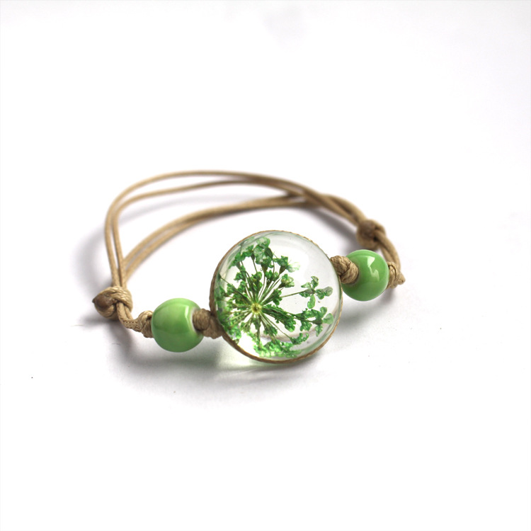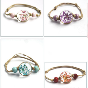 신선한 스타일 레이스 말린 꽃 식물 표본 팔찌 석고 유리 공 팔찌 여자 친구 선물스토어 가기