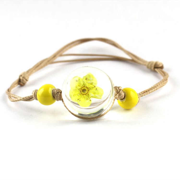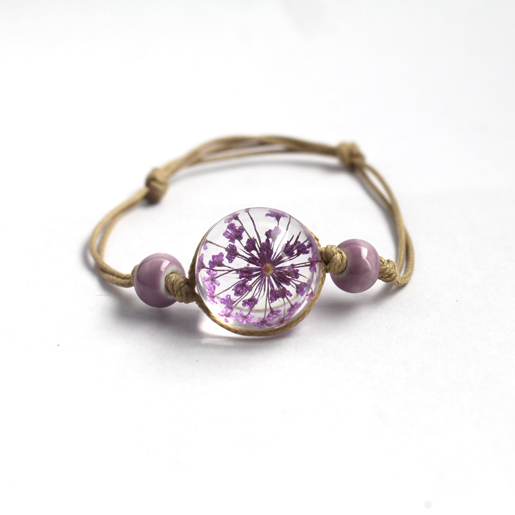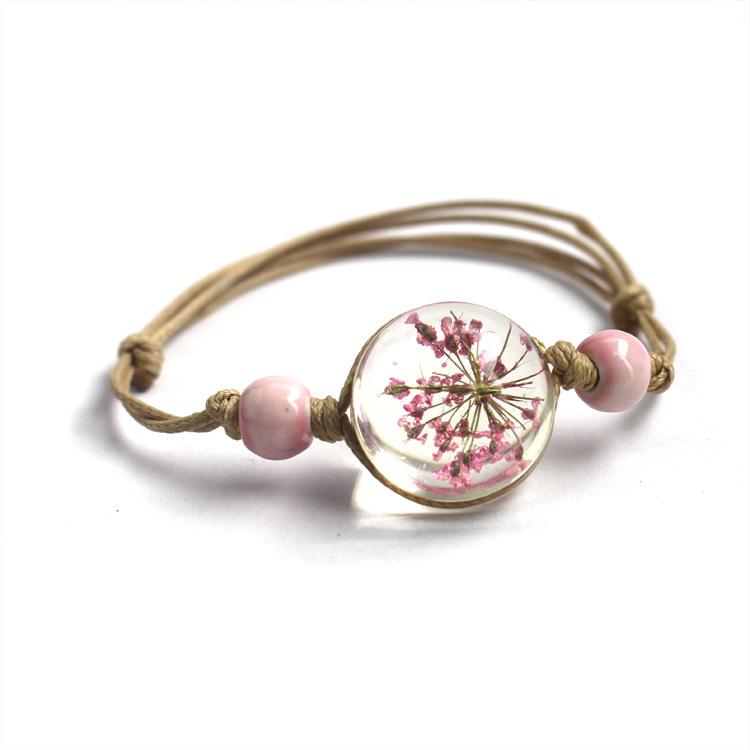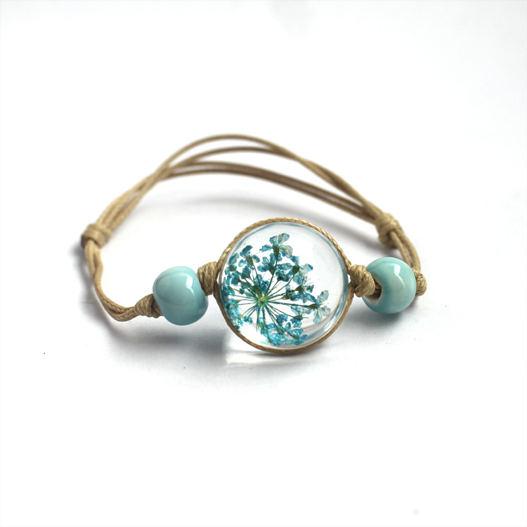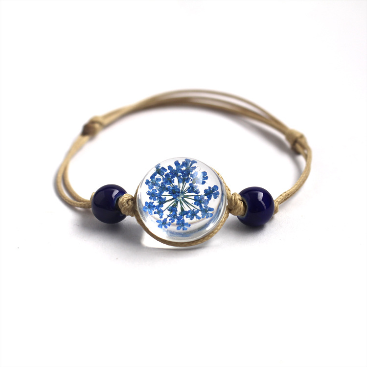신선한 스타일 레이스 말린 꽃 식물 표본 팔찌 석고 유리 공 팔찌 여자 친구 선물