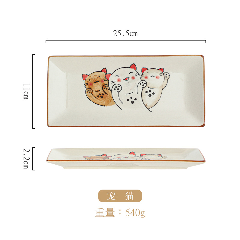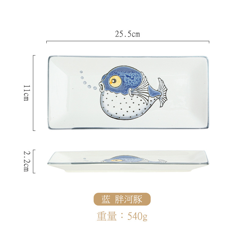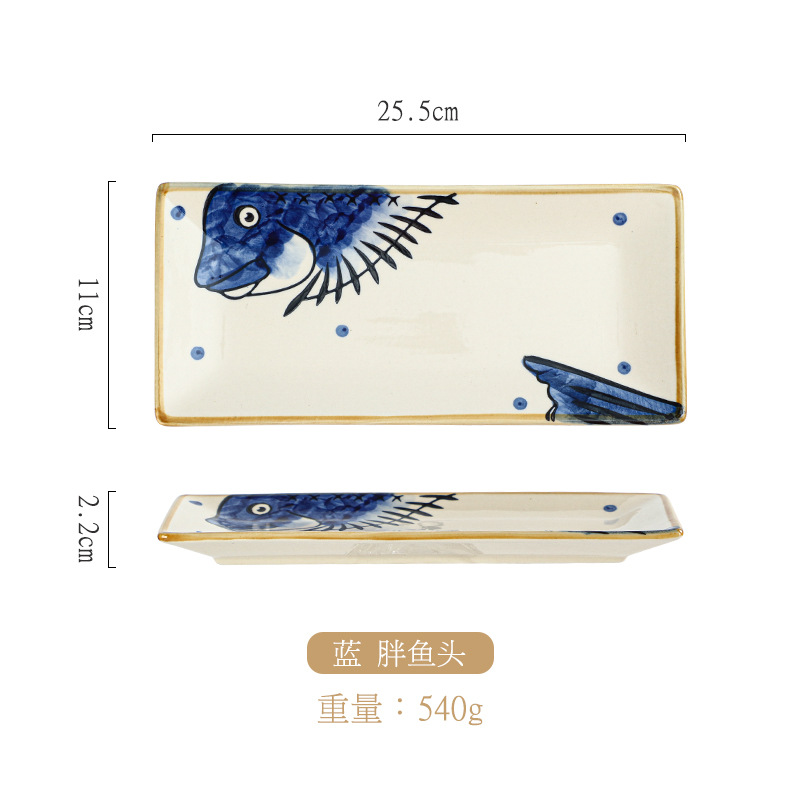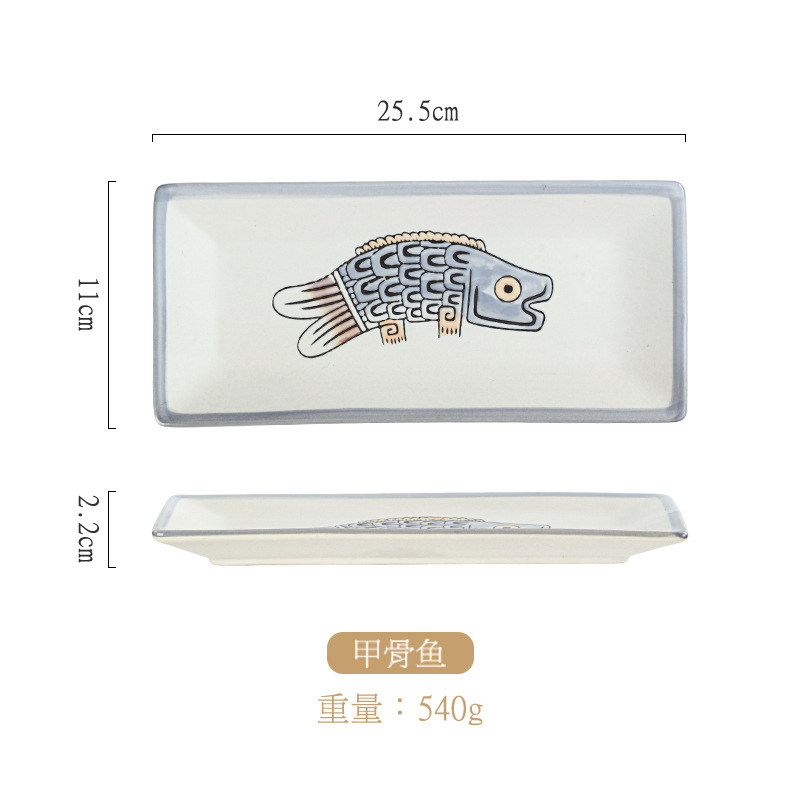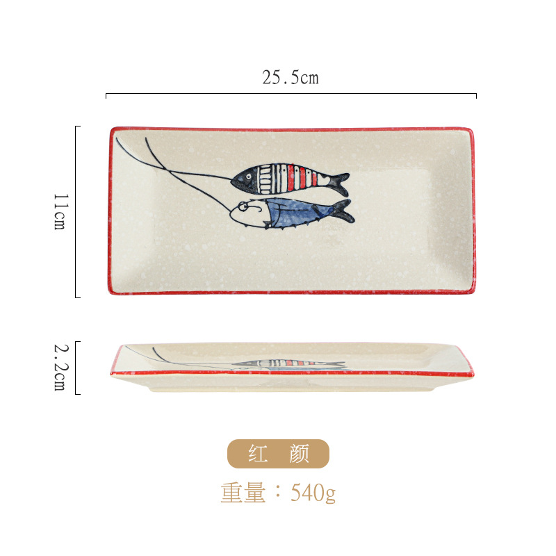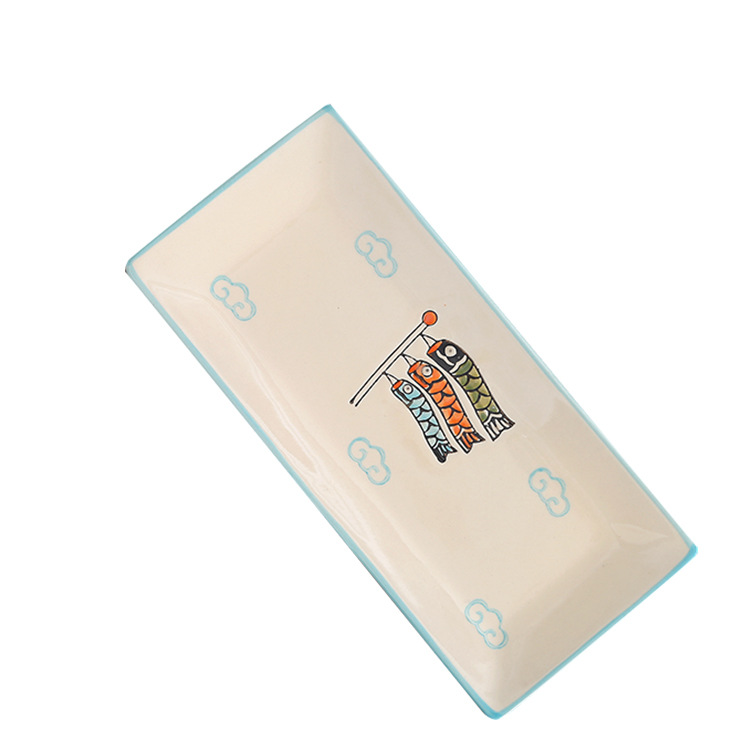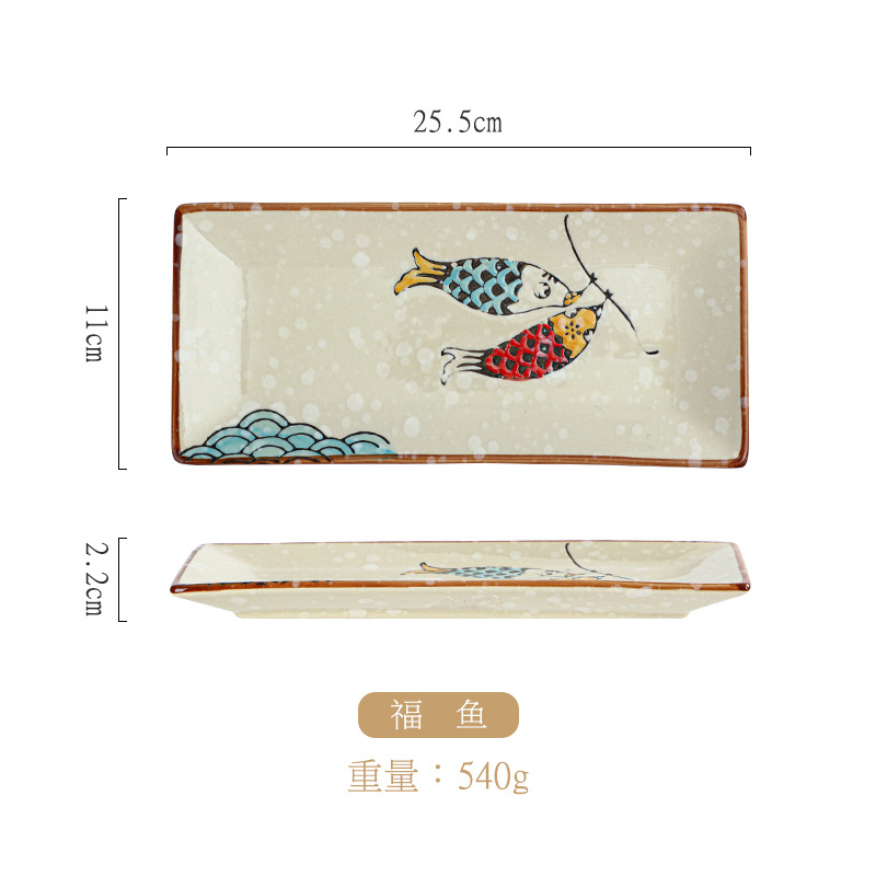 10 인치 일본 세라믹 레트로 직사각형 접시 창조적 인 손으로 그린 초밥 접시 레스토랑 회 접시 디저트 접시 스낵 접시