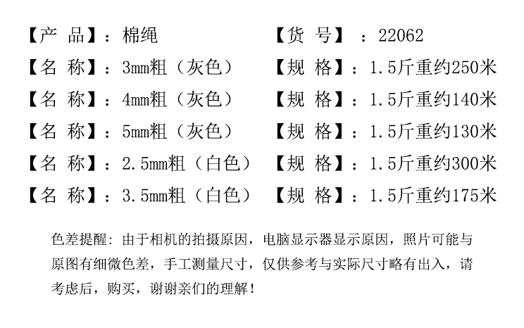 • 2 .. 5mm 두께 (흰색) 1.5kg 무게 약 300 미터
