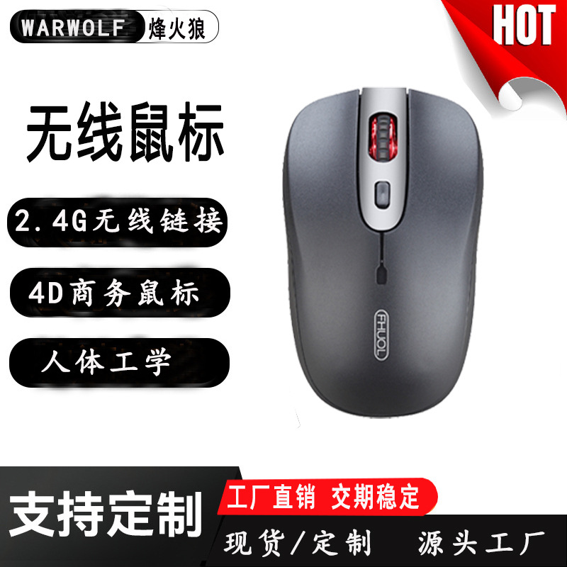 烽火狼M-100 无线2.4G商务鼠标 ,10米距离内双向无线自由移动,免对码智能连接,自动省电模式设计,使用安华高光学芯片,光标定位精确,过面能力更强。更显时尚