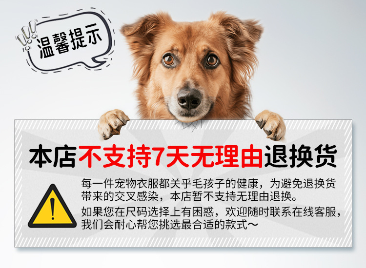 好消息 为吸引更多的商家,我们对有意向长期合作的客户,调整起订量:每次订货200元以上(并且5件起)都按供应!我公司产品支持支付宝交易,买家收到货满意后再付款,简单、、放心。另可代客人发货。 我公司专业从事宠物用品的研发、制造、销售。以宠物服装,宠物狗狗衣服。产品物美价廉,国内外,我们依靠完善的管理制度、的专业技术人才、先进的生产设备,不断创造出更新更优的宠物用品。