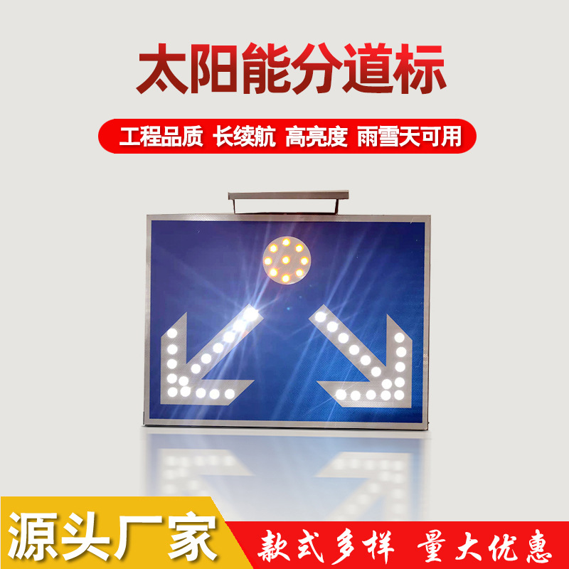 太阳能线型诱导指示标志是以单晶硅太阳能电池为能源,无需电网支持,不受地域限制,它利用太阳能电池将白天的阳光转换成电能储藏在蓄电池中,当夜幕将临时,光线昏暗或雨雾天气等视线不佳的情况下,标志上的发光二极管自动启动闪烁,光线特别明亮,醒目,具有强烈的警示作用。特别在无电源的高速公路,城市道路弯道处,这种可主动发光的标志牌可以起到特殊的警示作用,其可视距离是以反光膜作为反光材料的标识牌的5倍。