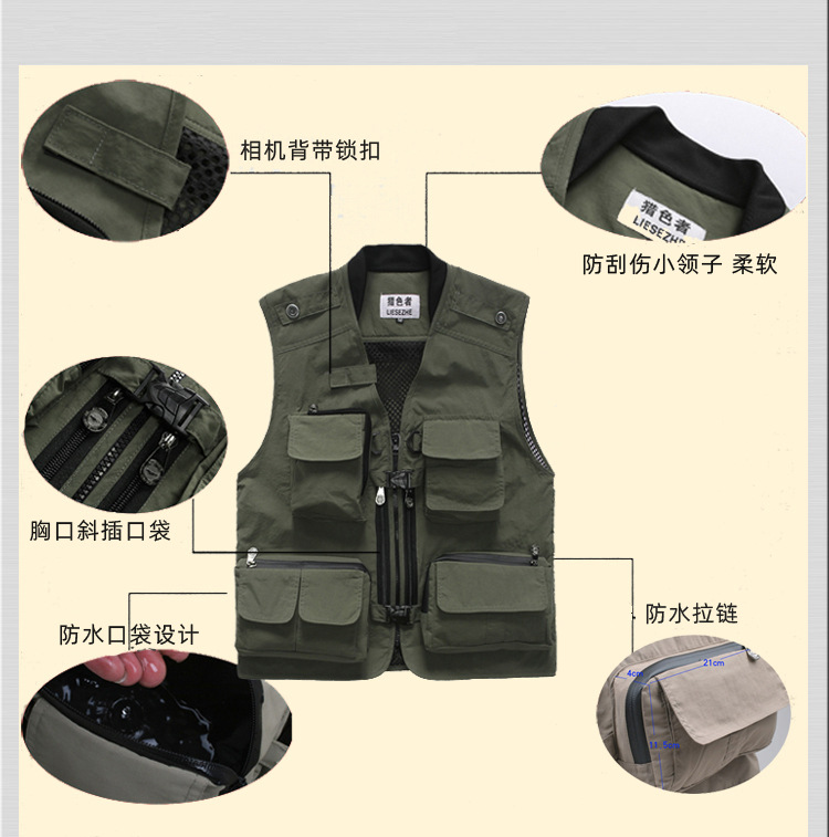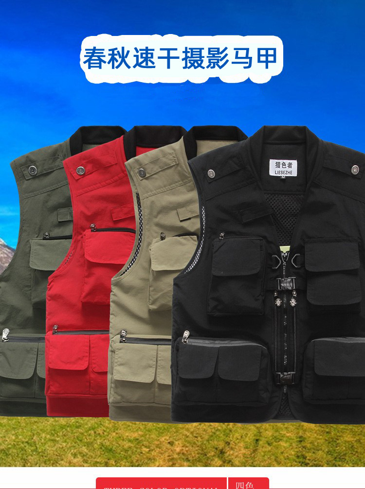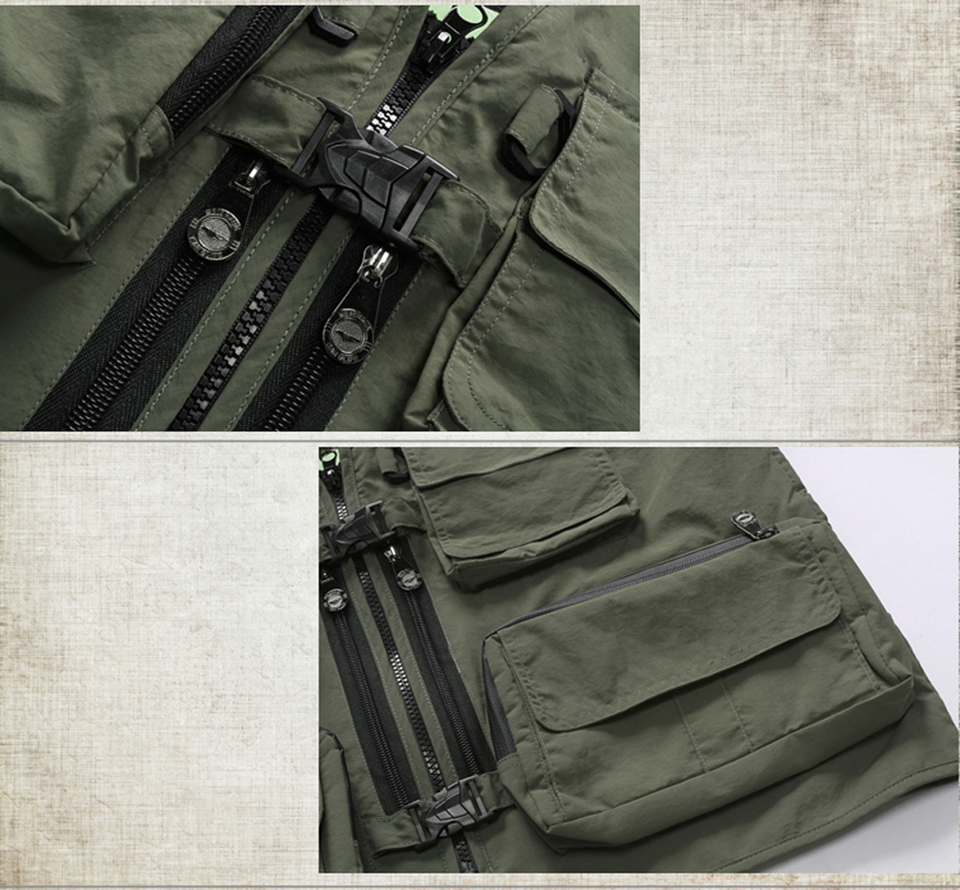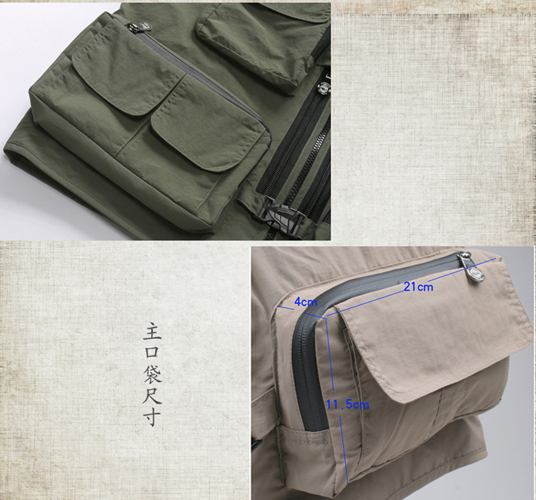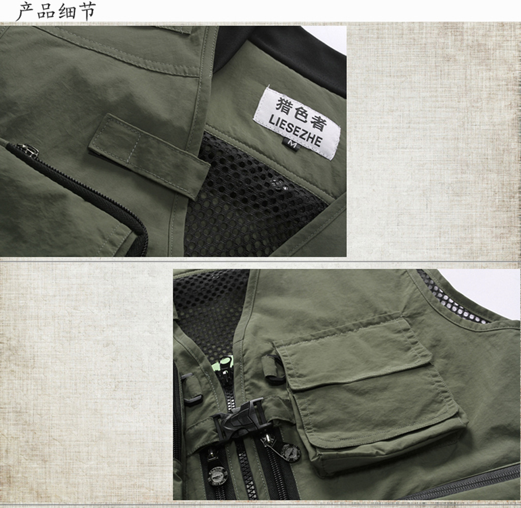 컬러 헌터 야외 속건 다기능 사진 낚시 스포츠 조끼 남성용 단색 얇은 조끼 멀티 포켓 조끼