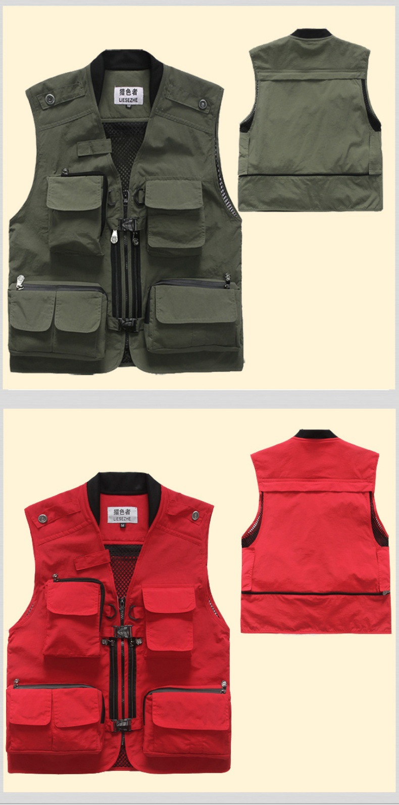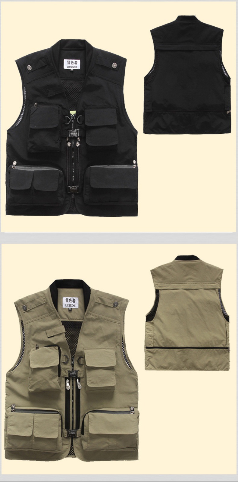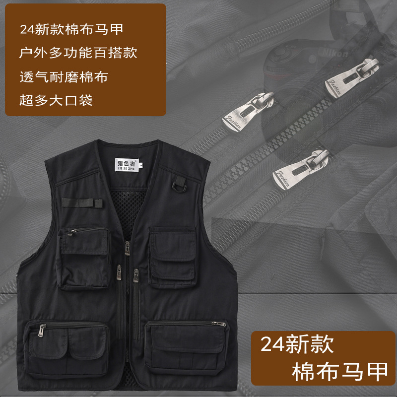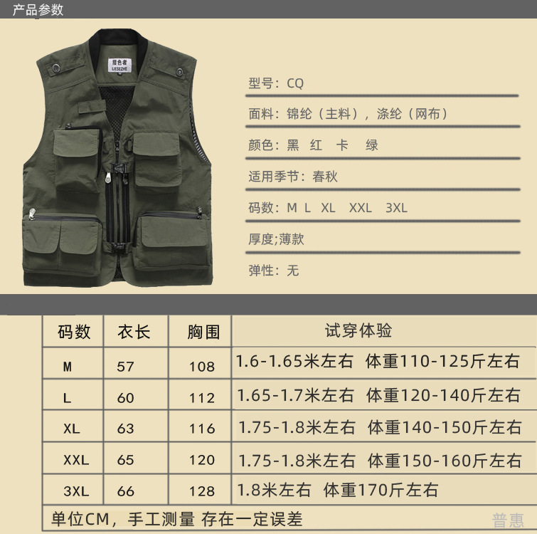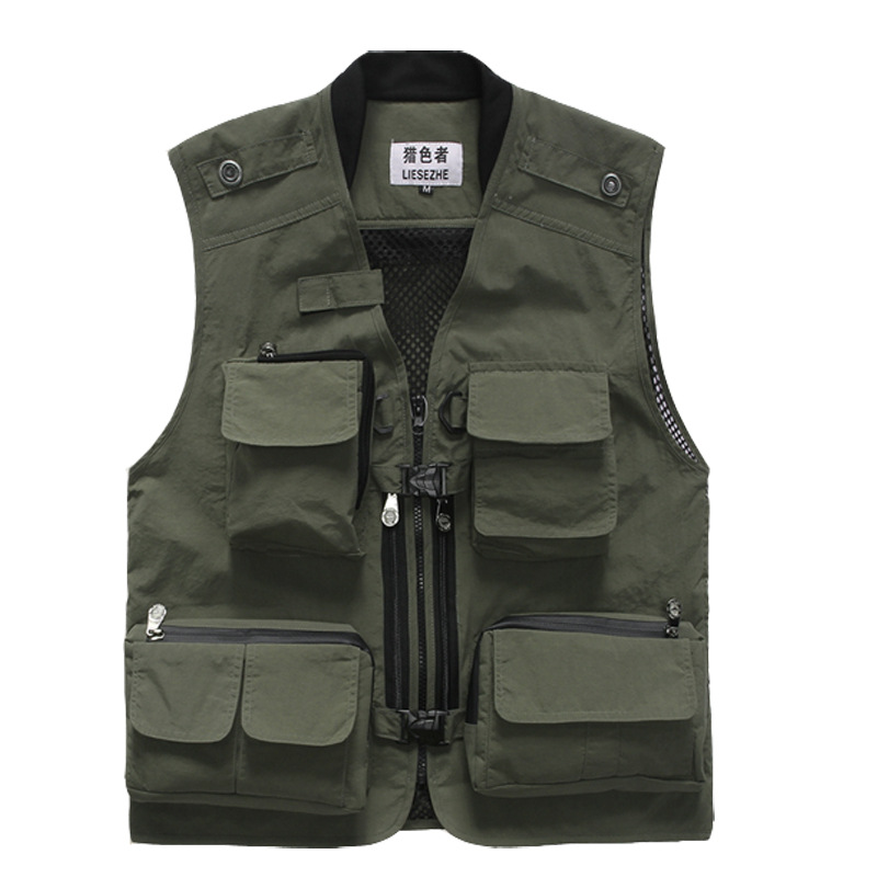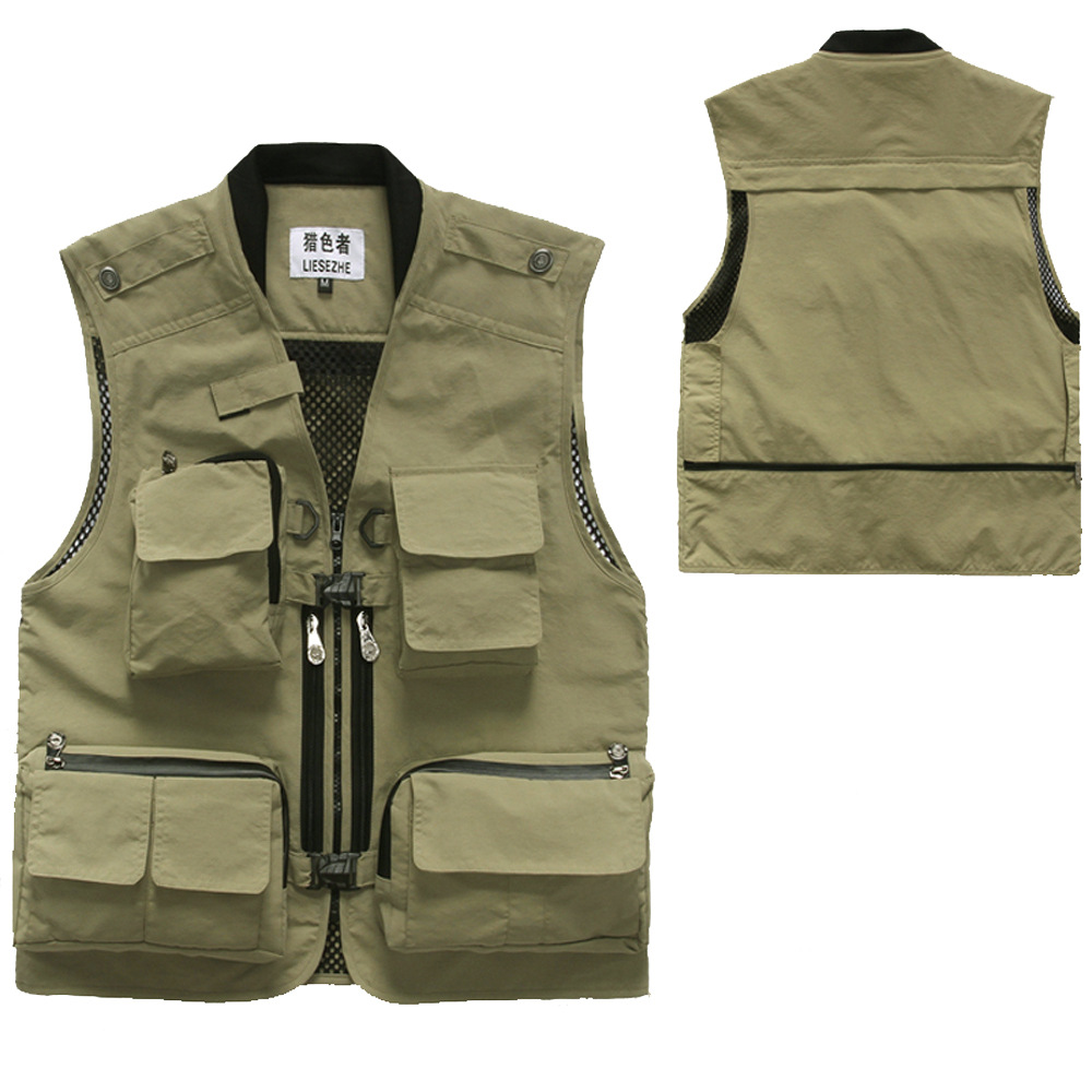 컬러 헌터 야외 속건 다기능 사진 낚시 스포츠 조끼 남성용 단색 얇은 조끼 멀티 포켓 조끼
