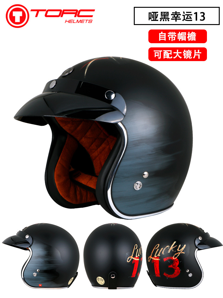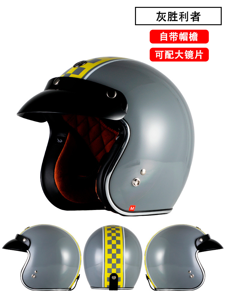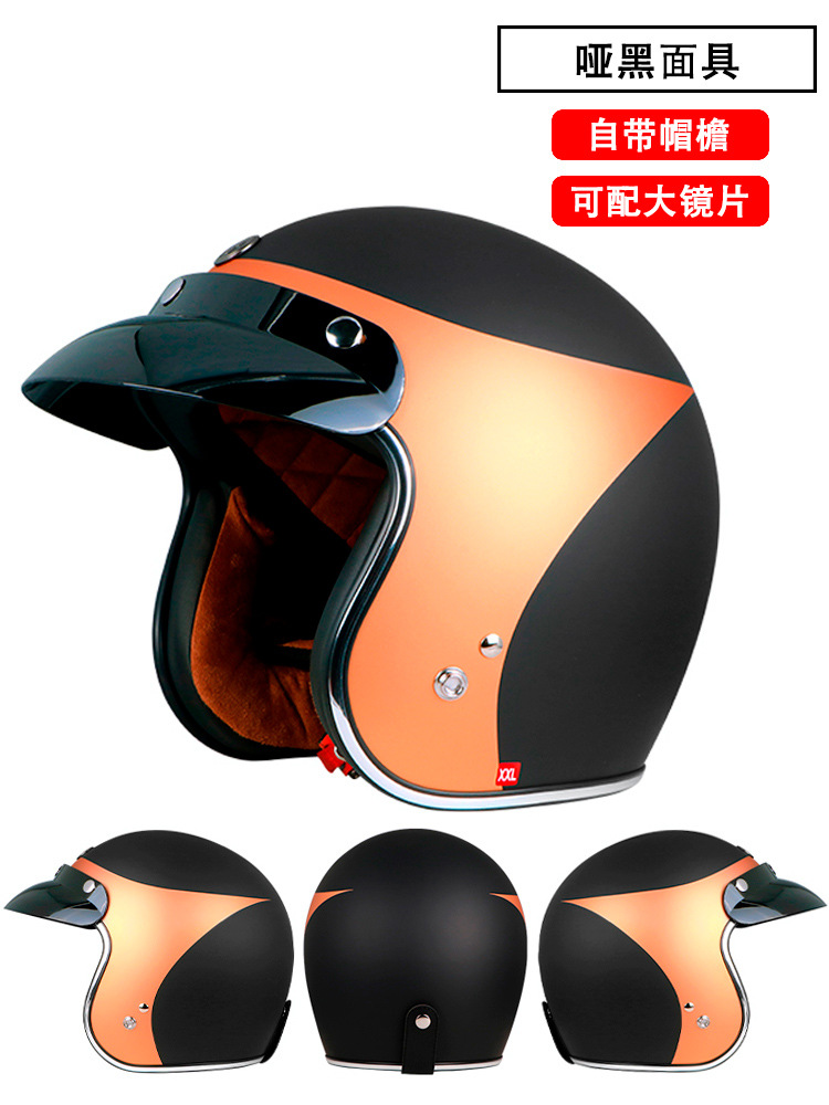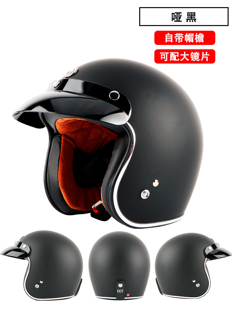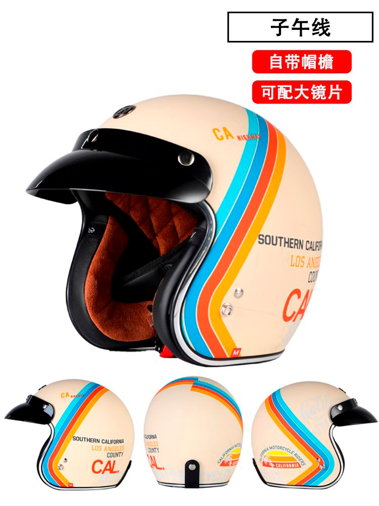 정품 베키오 오토바이 레트로 기관차 내장 렌즈 유리 섬유 헬멧 반 헬멧 복고풍 헬멧
