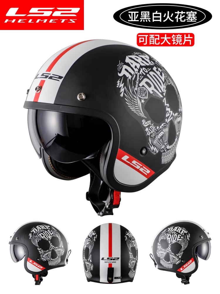 • LS2 OF599 매트 블랙/화이트 점화 플러그