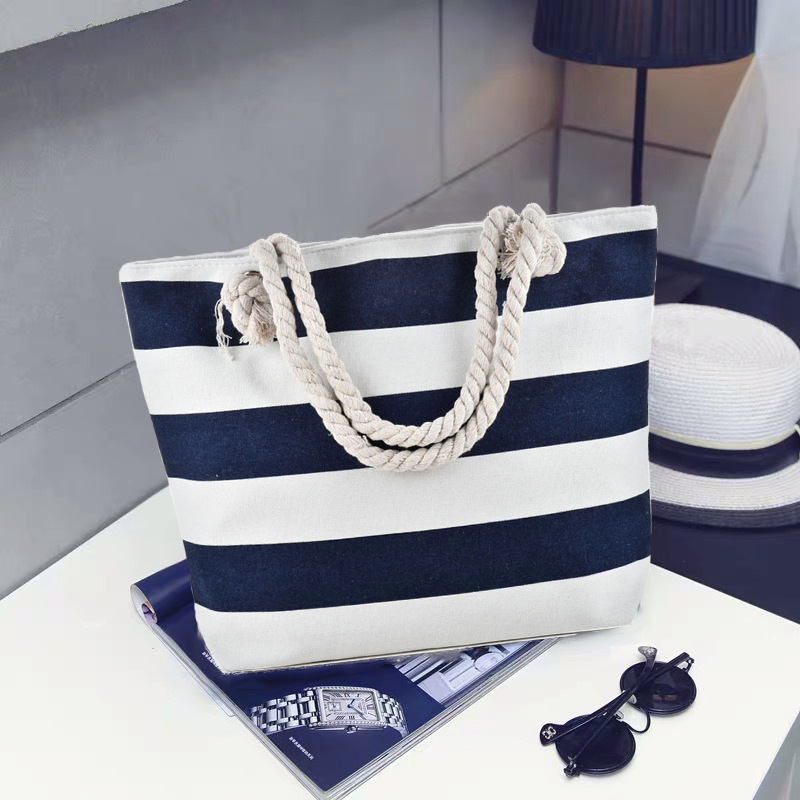 새로운 크로스 보더 비치 백 스트라이프 대외 무역 캐주얼 가방 아마존 겨드랑이 가방 여성 숄더백 여성 캔버스 가방스토어 가기