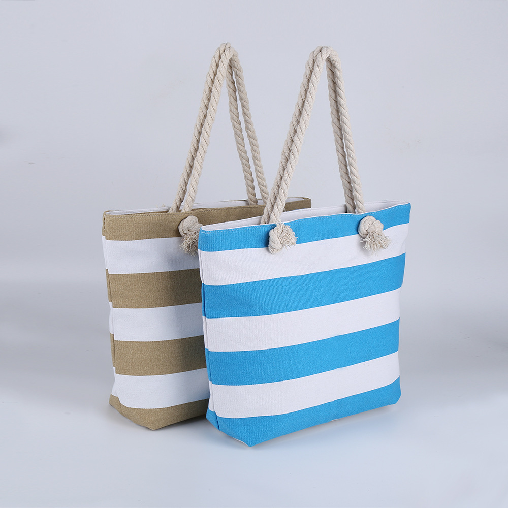 새로운 크로스 보더 비치 백 스트라이프 대외 무역 캐주얼 가방 아마존 겨드랑이 가방 여성 숄더백 여성 캔버스 가방