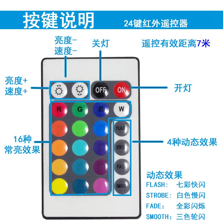 【工作功率】:<72W 5050RGB灯带可以带5米