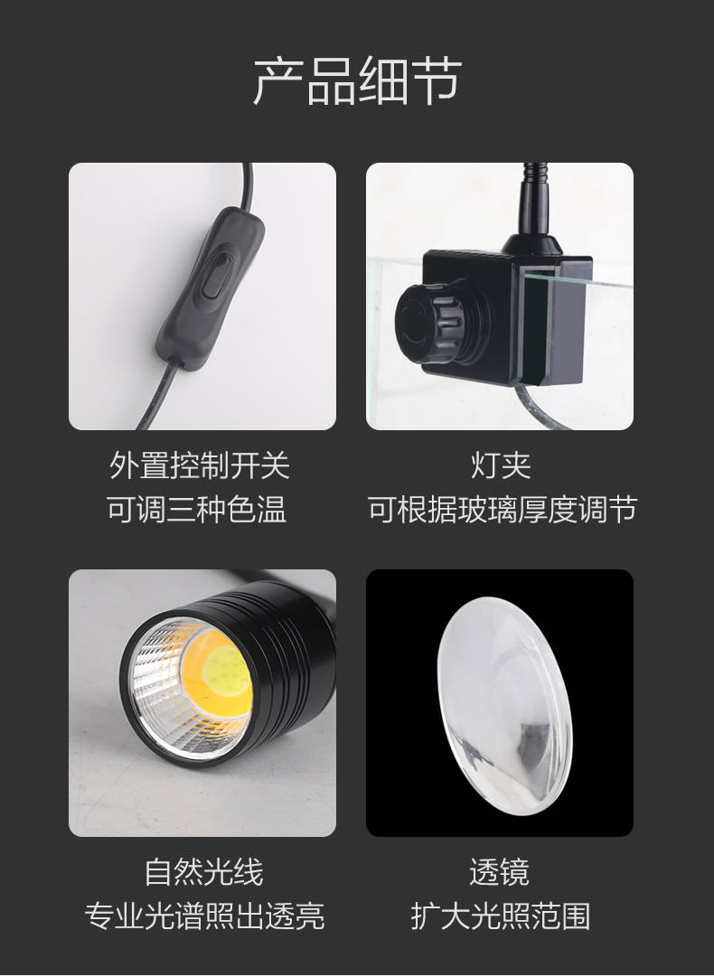 鱼缸射灯夹鱼缸灯led灯南美缸异型鱼热带鱼观赏鱼水草缸海缸射灯