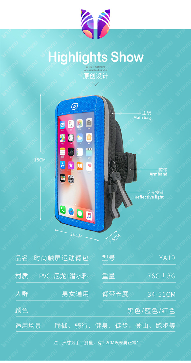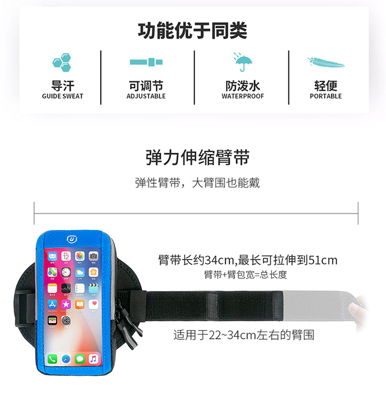 Weiqiang 오리지널 스포츠 암 백 러닝 터치 스크린 휴대 전화 암 백 야외 피트니스 방수 암 백 스포츠 장비