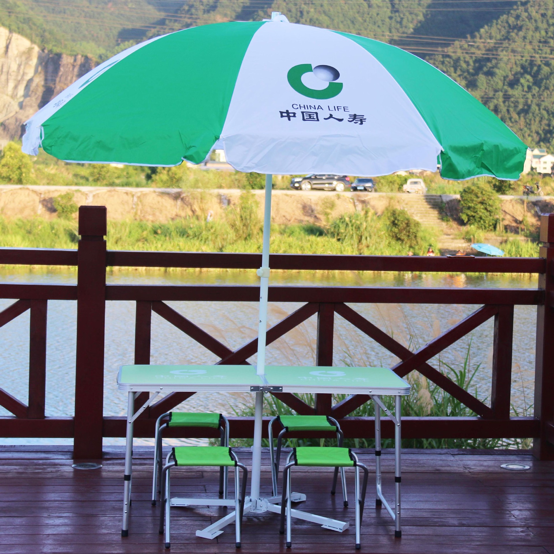 此款桌子和伞均含人寿logo印刷,大量现货供应。以上价格均为少量零售价格,量大可直接联系店家