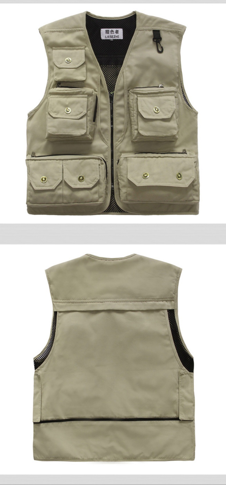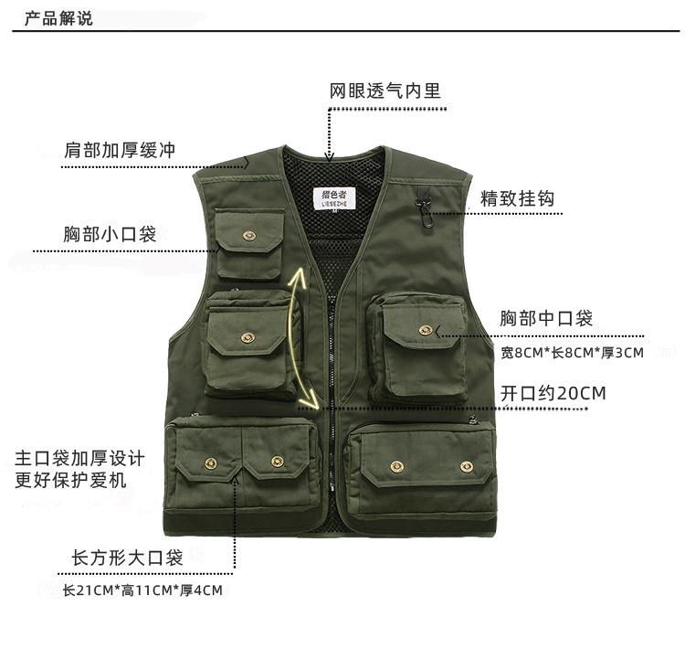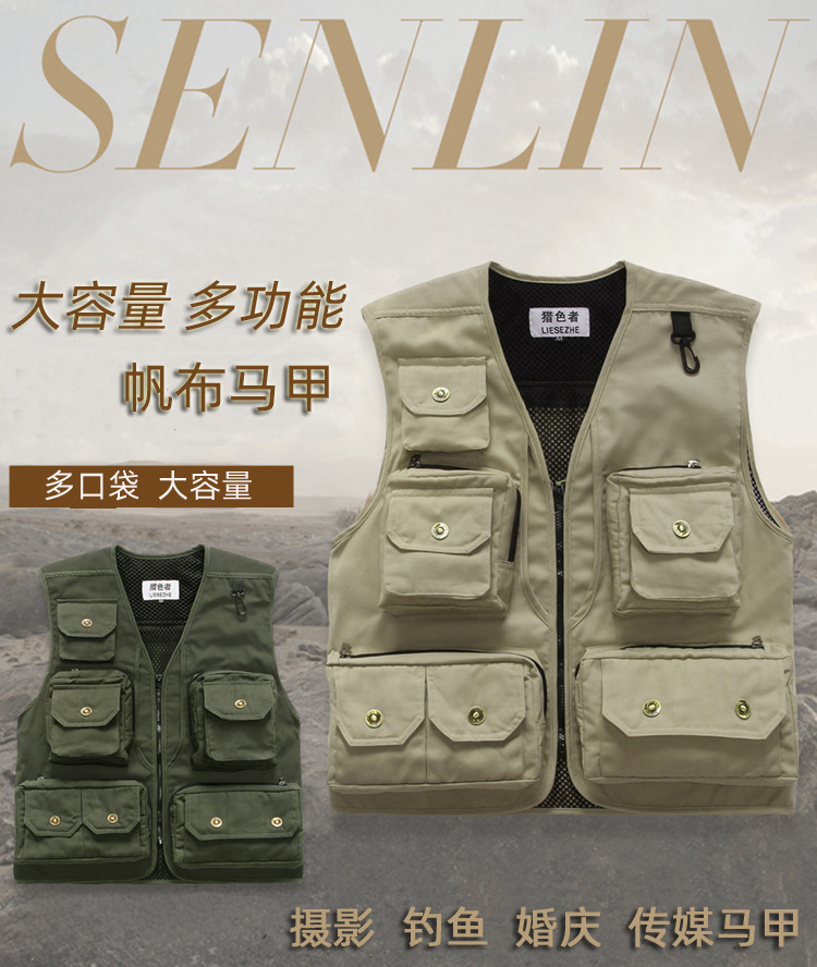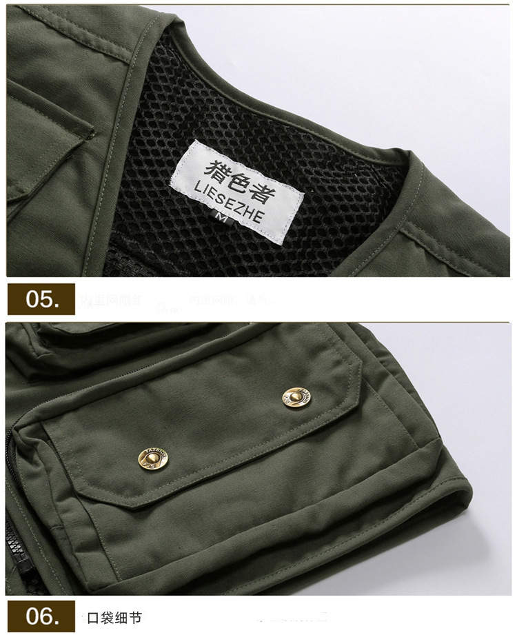 로고가 인쇄된 남성용 조끼, 야외용 면 멀티 포켓 사진 촬영, 낚시 캐주얼 조끼, 조끼, 사진 촬영 필수품스토어 가기