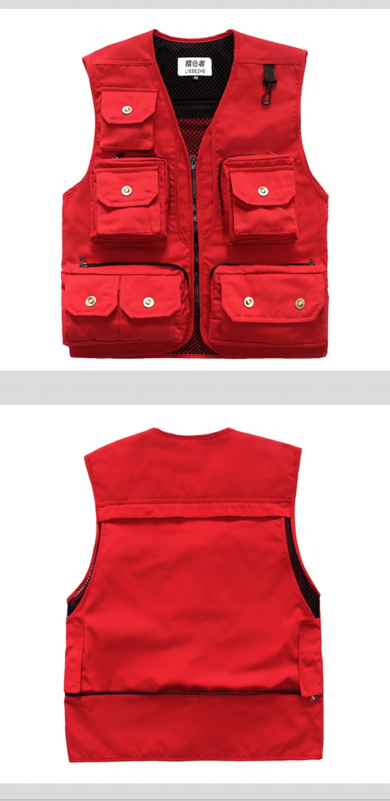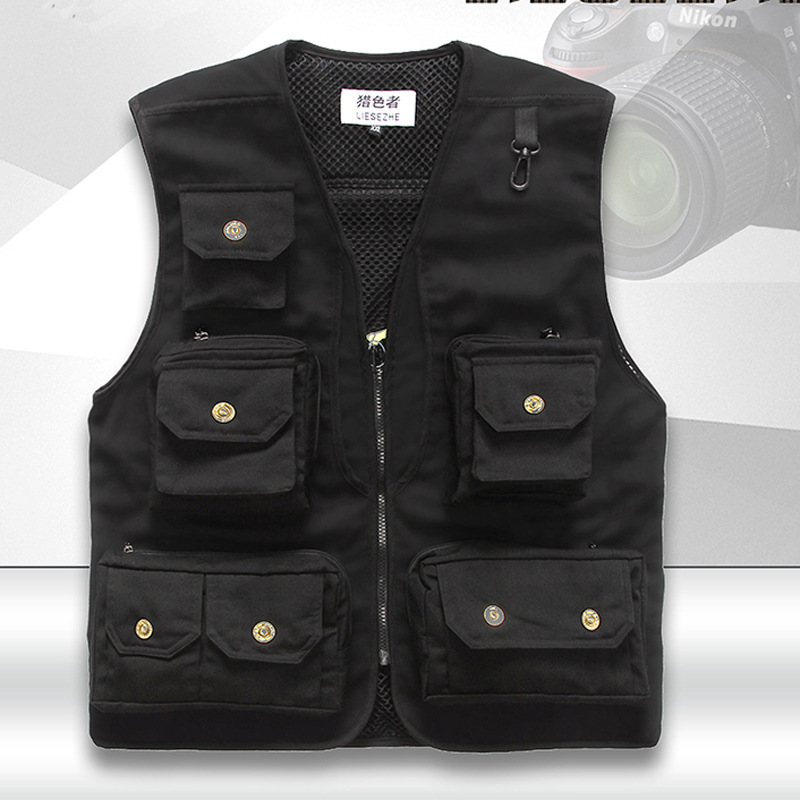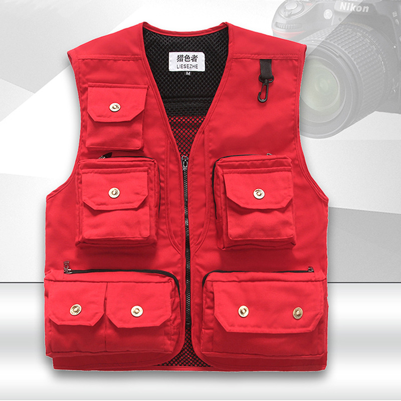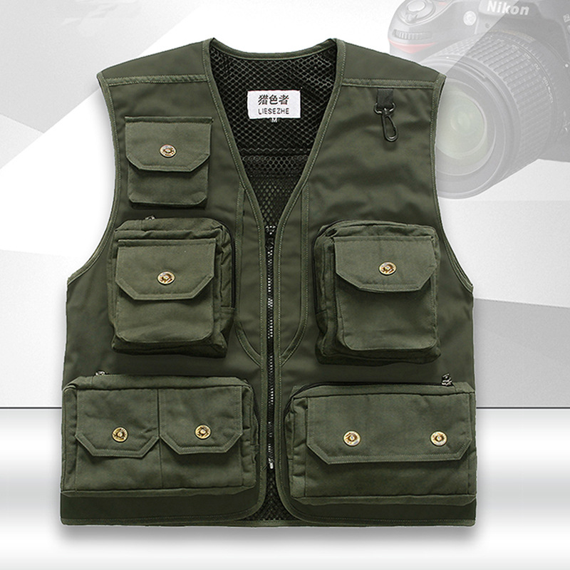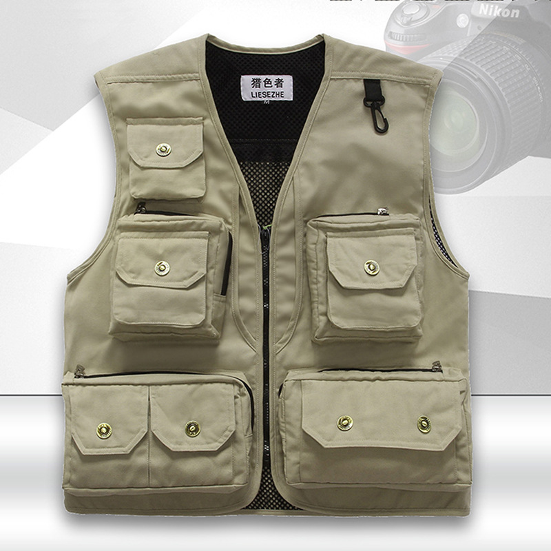 로고가 인쇄된 남성용 조끼, 야외용 면 멀티 포켓 사진 촬영, 낚시 캐주얼 조끼, 조끼, 사진 촬영 필수품