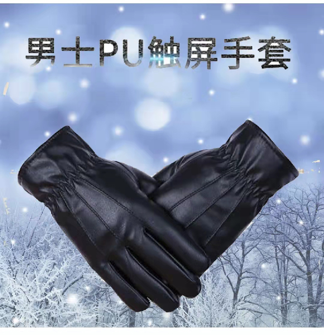 양털 안감 가죽 장갑 도매 남성용 PU 장갑 두껍고 따뜻한 가을 겨울 야외 전기차 타기 장갑 도매 공급
