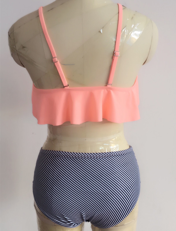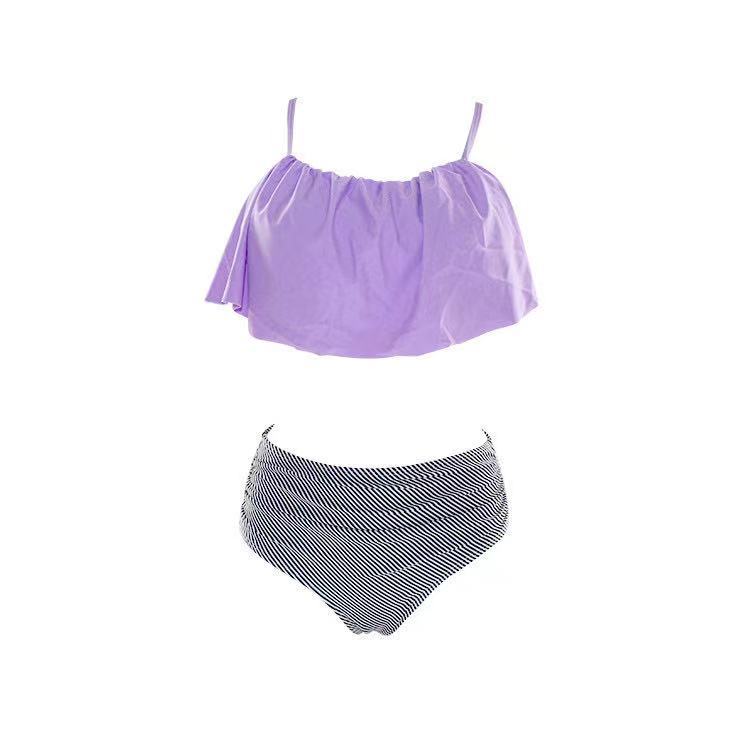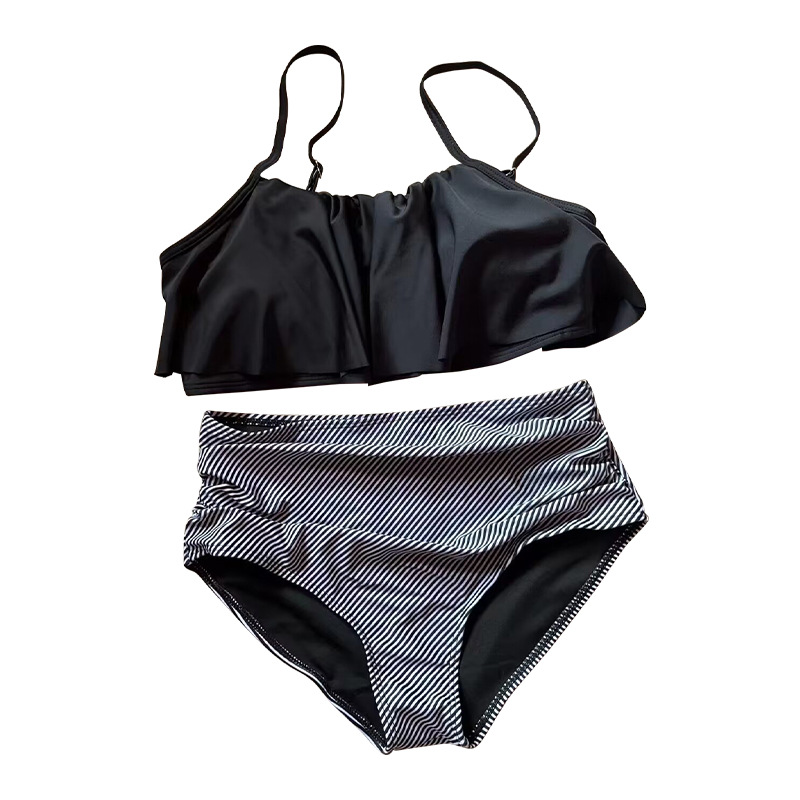국경 간 새로운 프릴 여성 수영복 유럽과 미국의 플러스 사이즈 비키니 수영복 하이 웨이스트 스트라이프 스플릿 복서 수영복