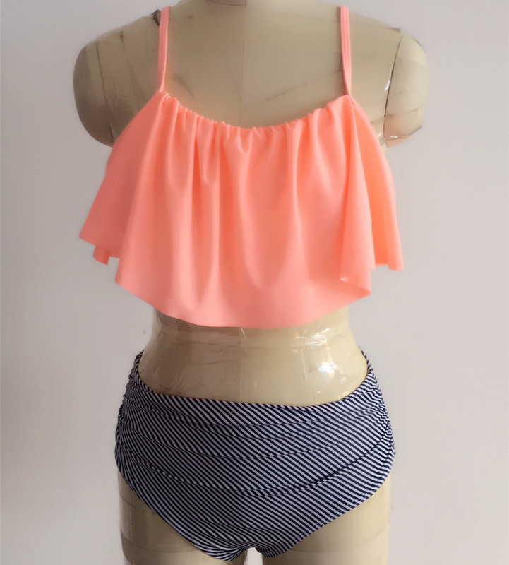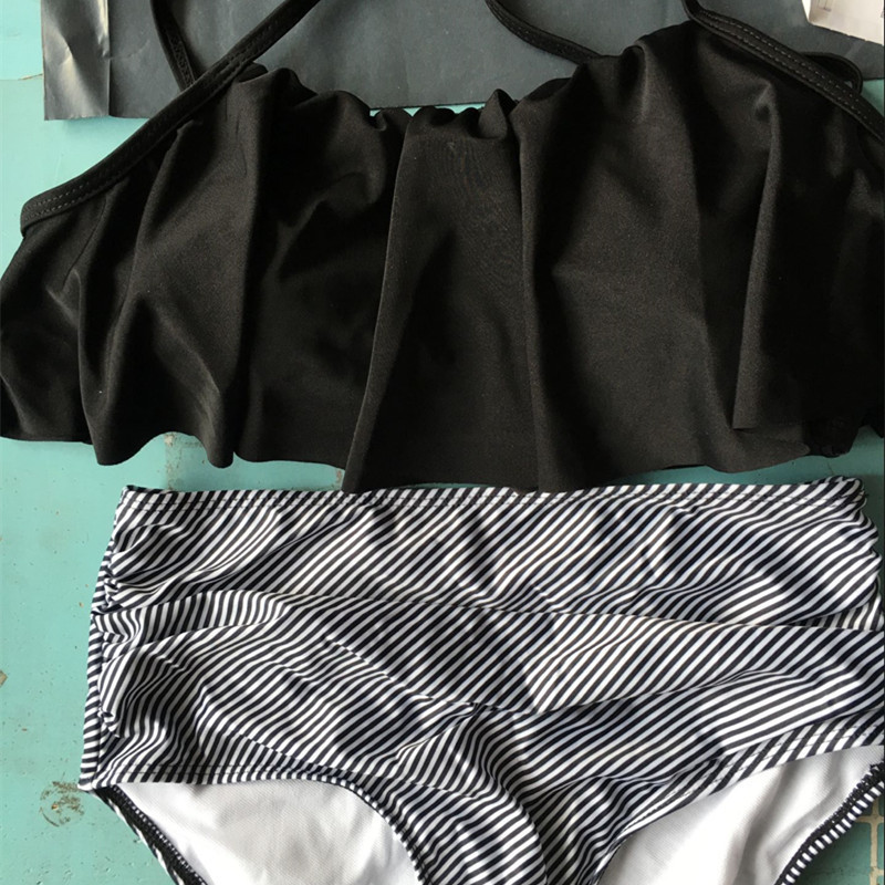 국경 간 새로운 프릴 여성 수영복 유럽과 미국의 플러스 사이즈 비키니 수영복 하이 웨이스트 스트라이프 스플릿 복서 수영복스토어 가기
