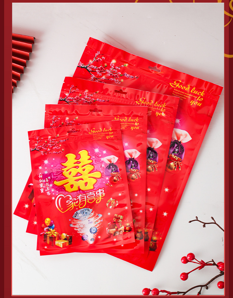 공장 다이렉트 뉴 웨딩 캔디 식품 포장 가방 축제 웨딩 캔디 자체 밀봉 백 플라스틱 선물 가방 무료 배송