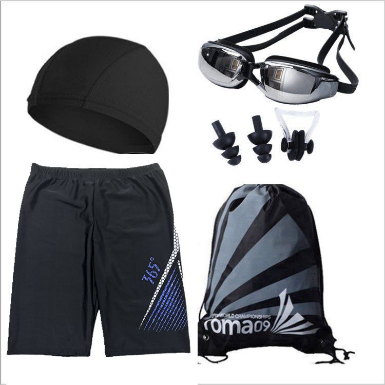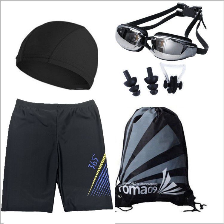 包邮成人男士泳裤套装 泳帽泳镜近视平角大码游泳衣泡温泉5件装备