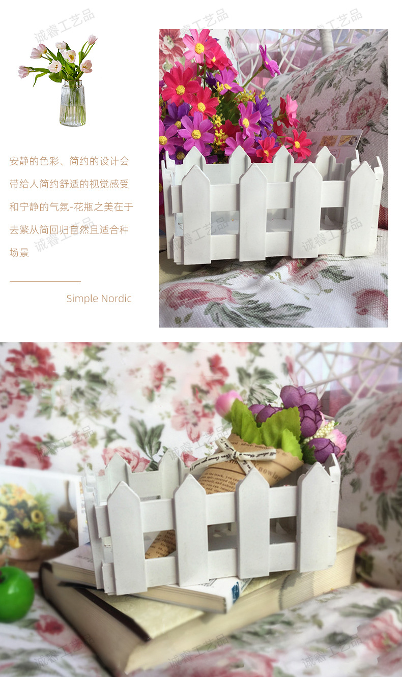 공장 도매 흰색 플라스틱 사각형 울타리 화분 안뜰 발코니 원예 녹색 식물 시뮬레이션 꽃 꽃