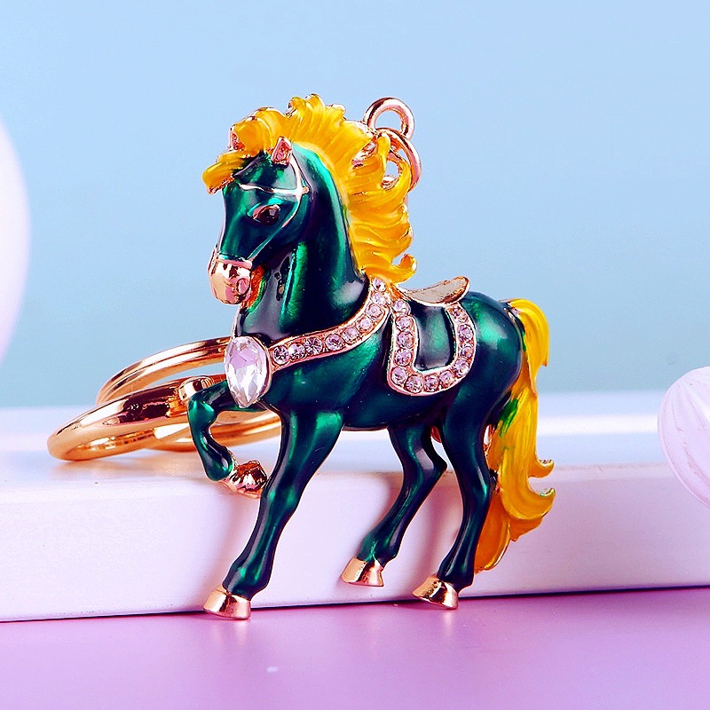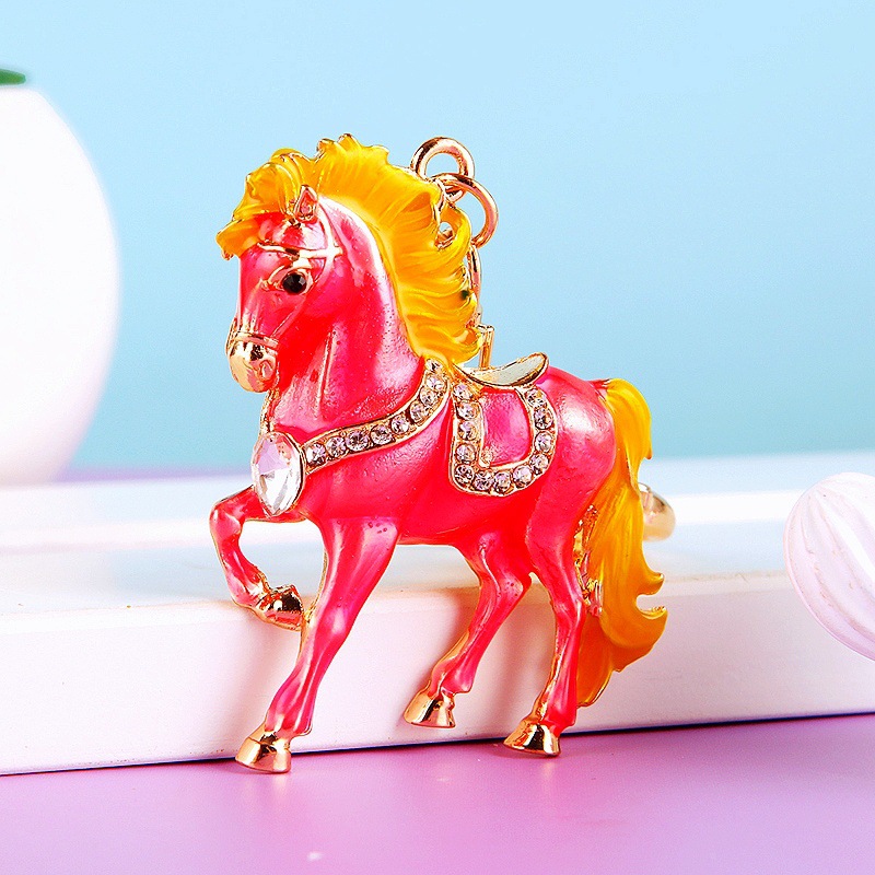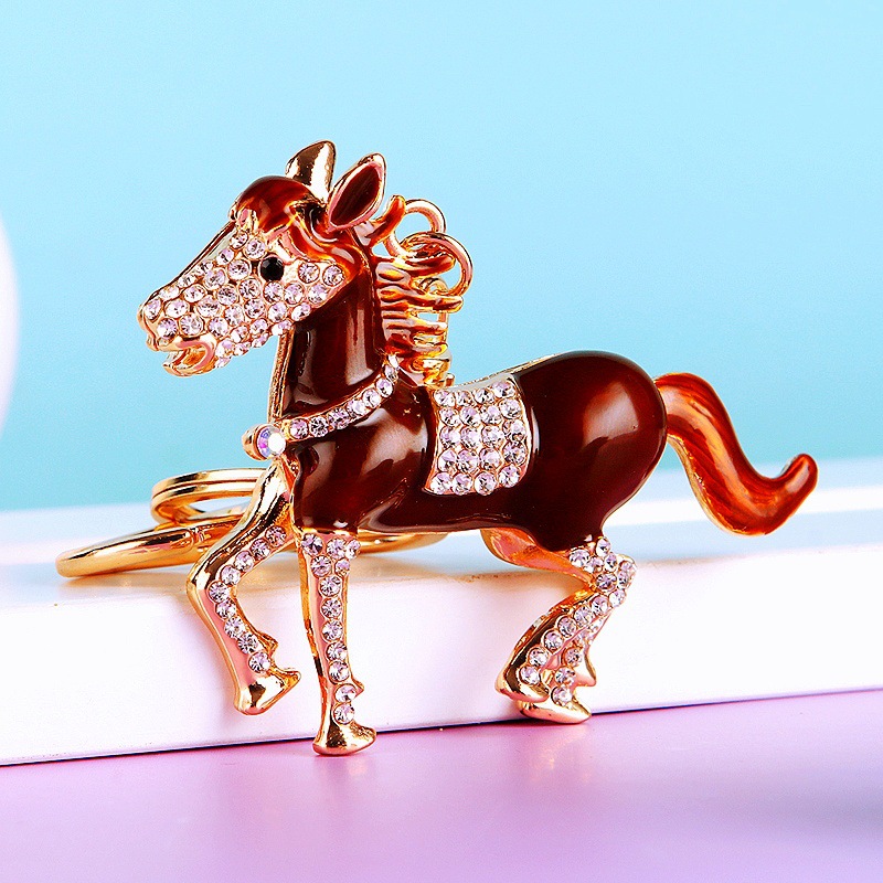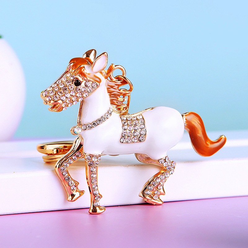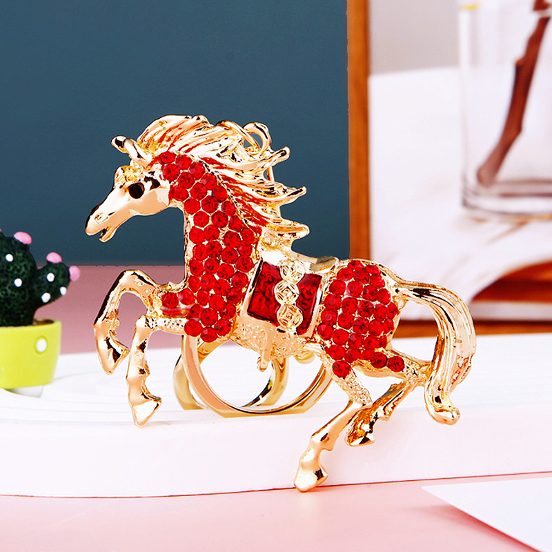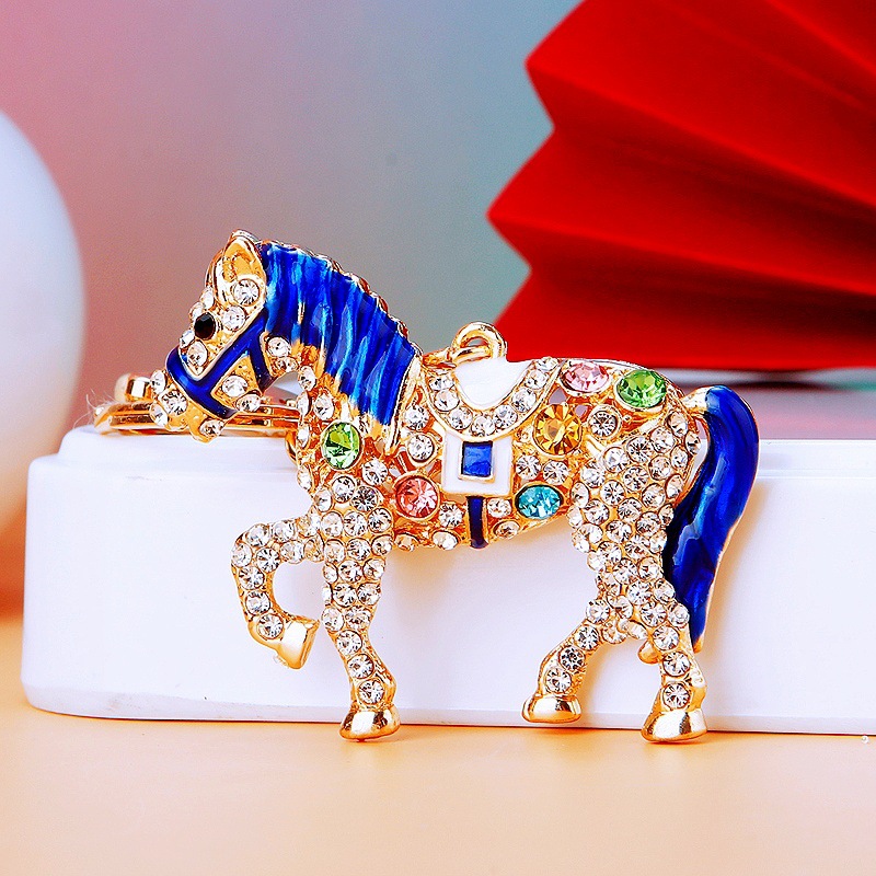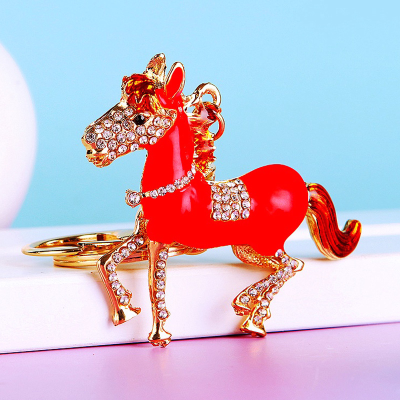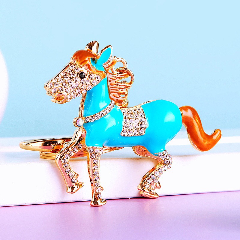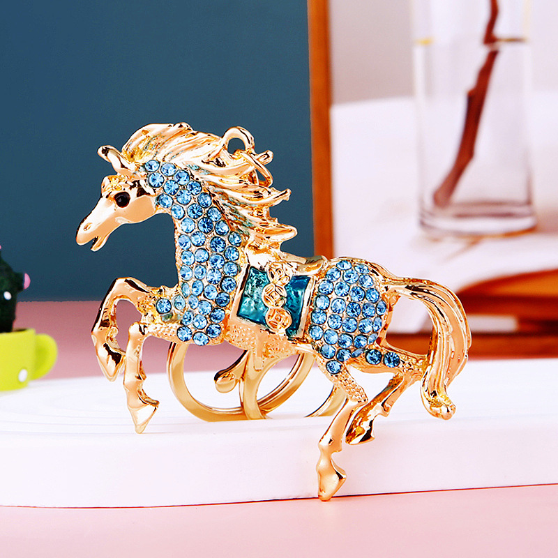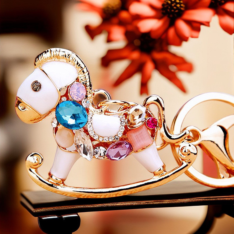 별자리 다이아몬드 장식 나무말 자동차 키체인 여성용 창의적인 가방 장식품 금속 말 키체인 링 비즈니스 선물스토어 가기