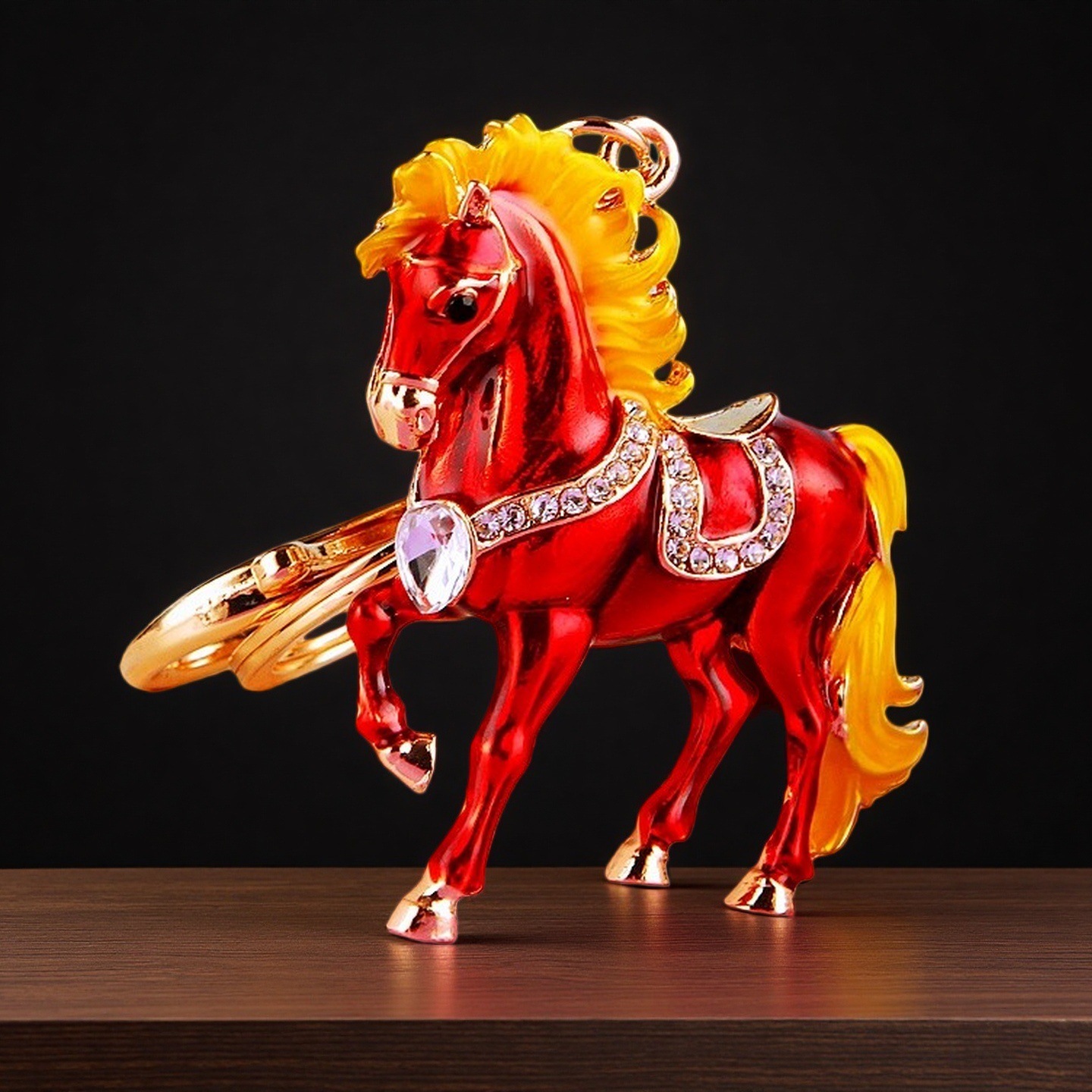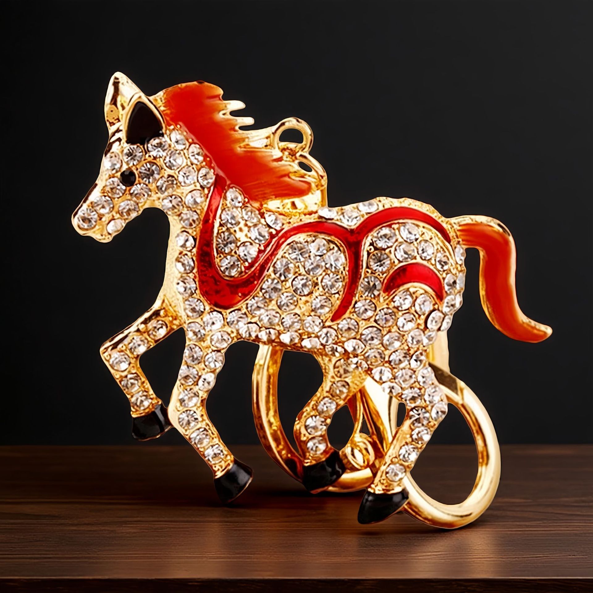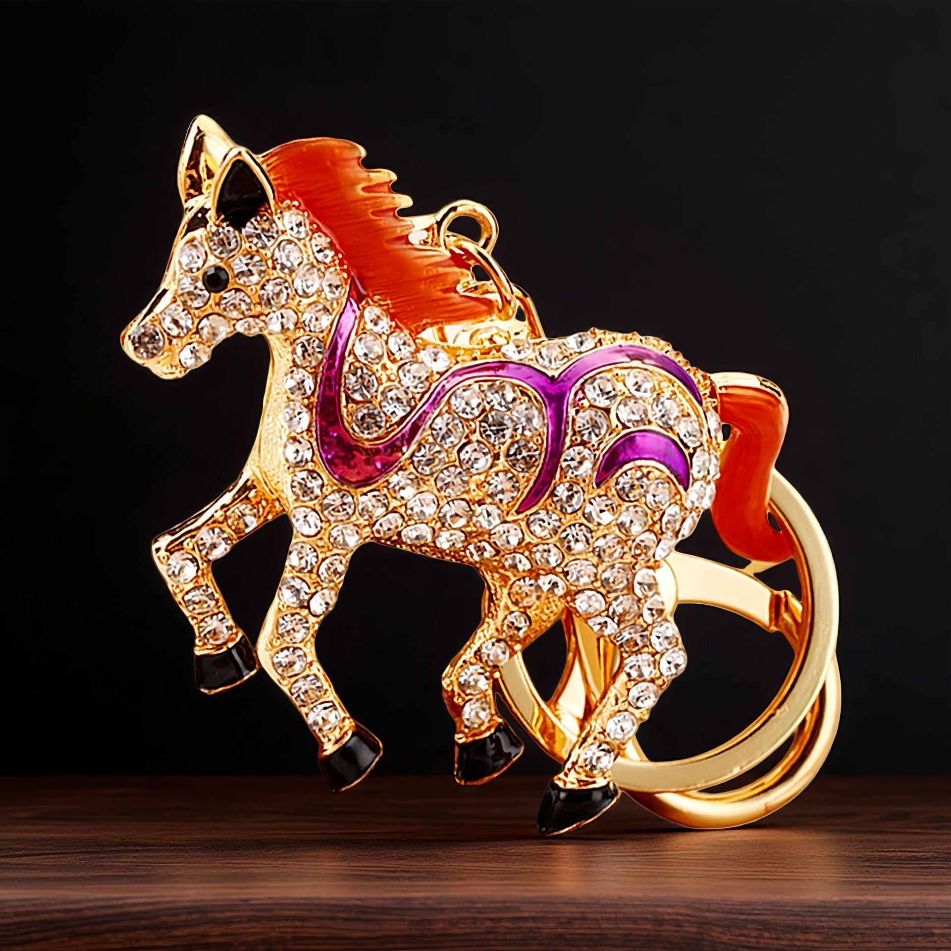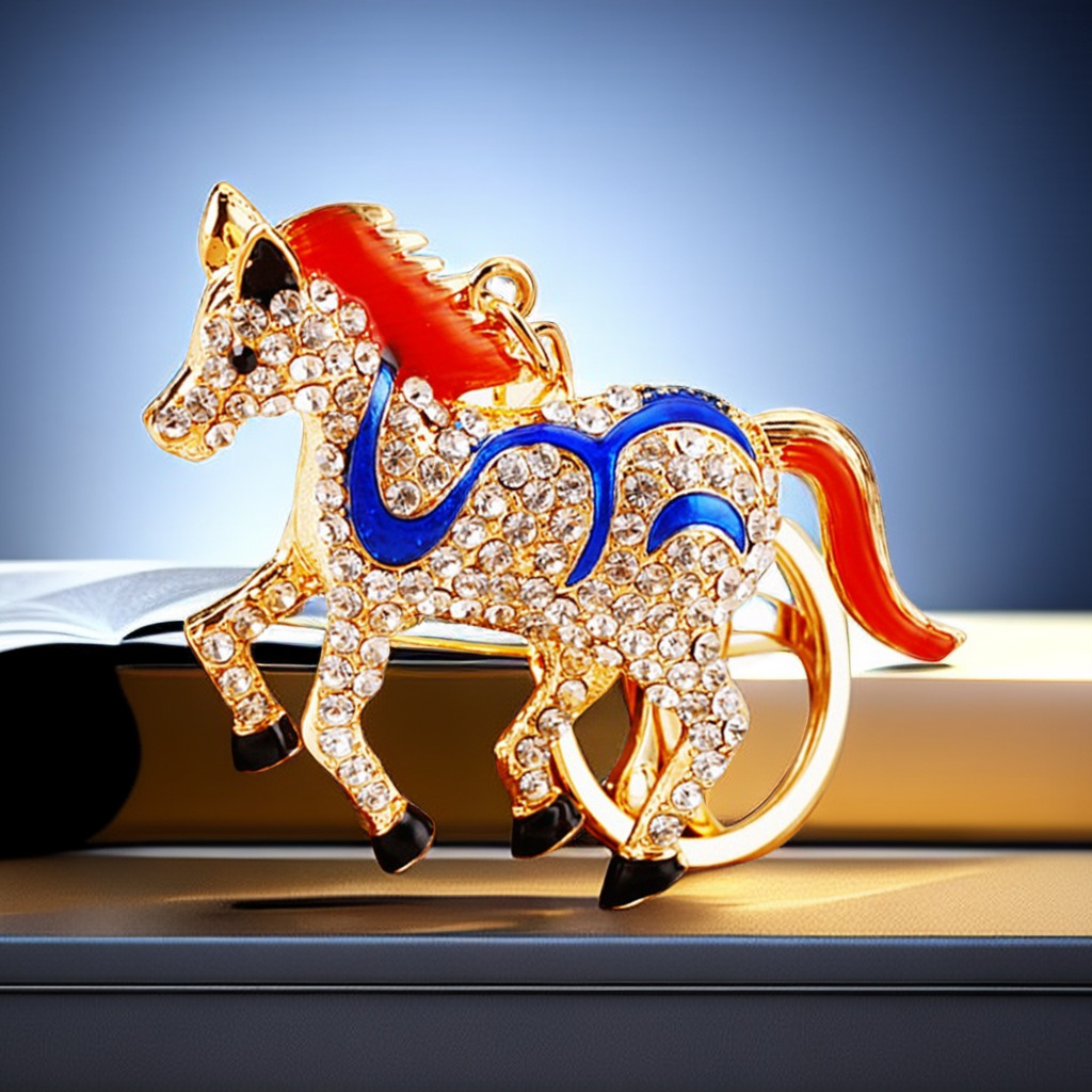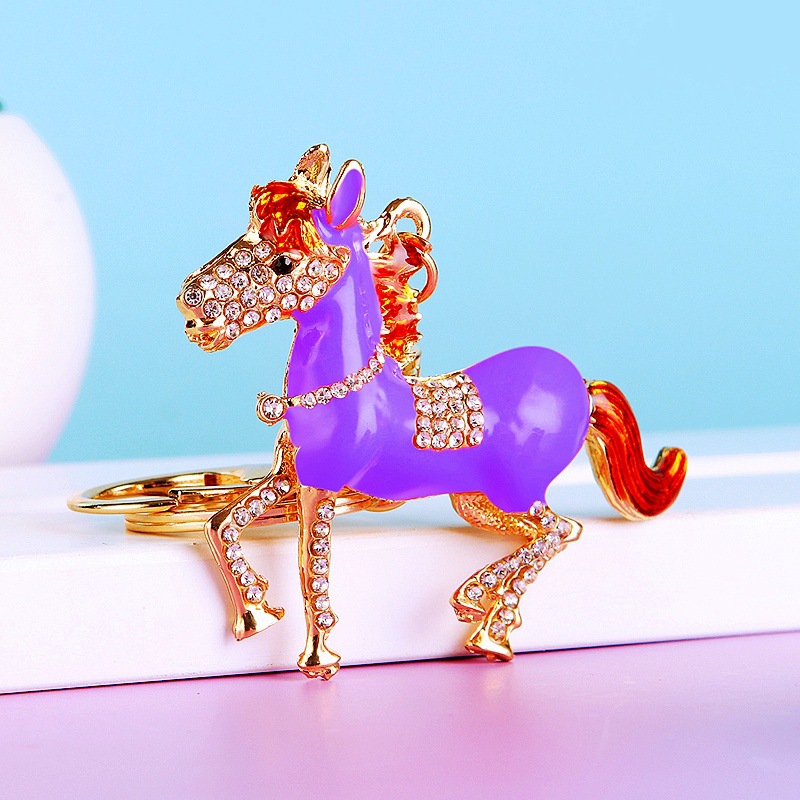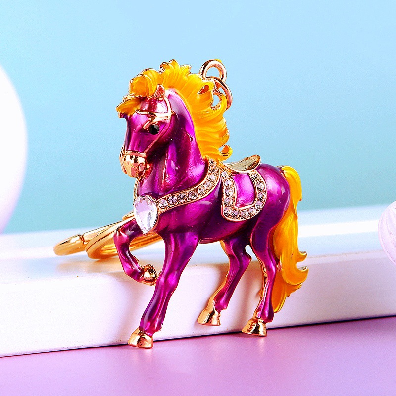 별자리 다이아몬드 장식 나무말 자동차 키체인 여성용 창의적인 가방 장식품 금속 말 키체인 링 비즈니스 선물스토어 가기