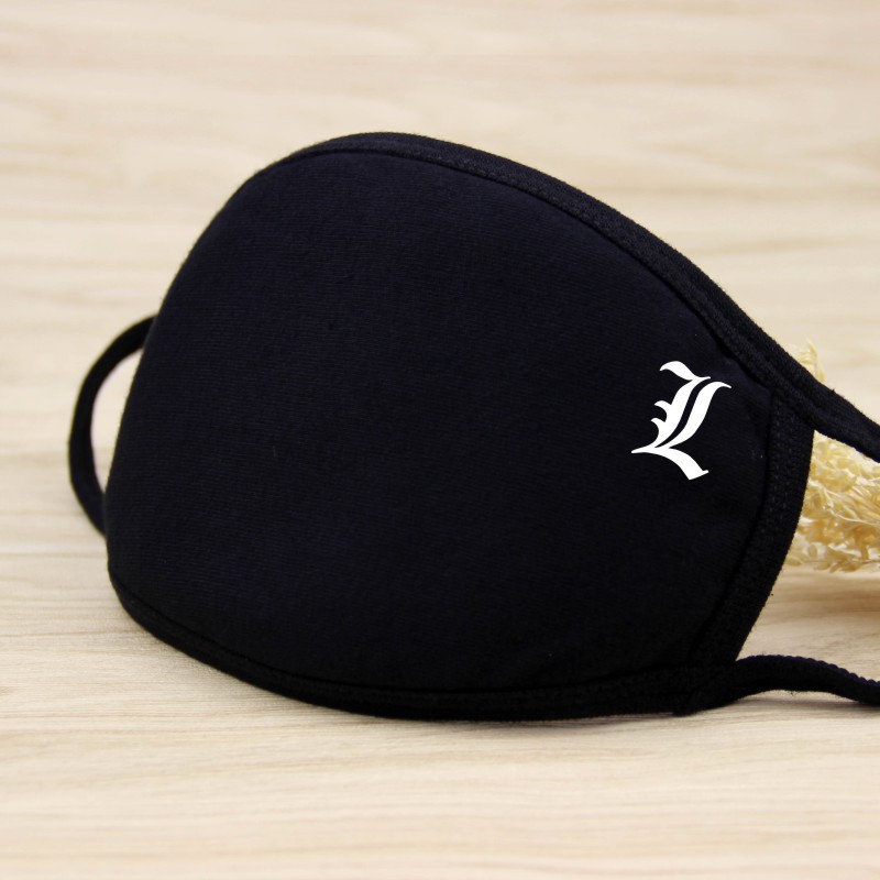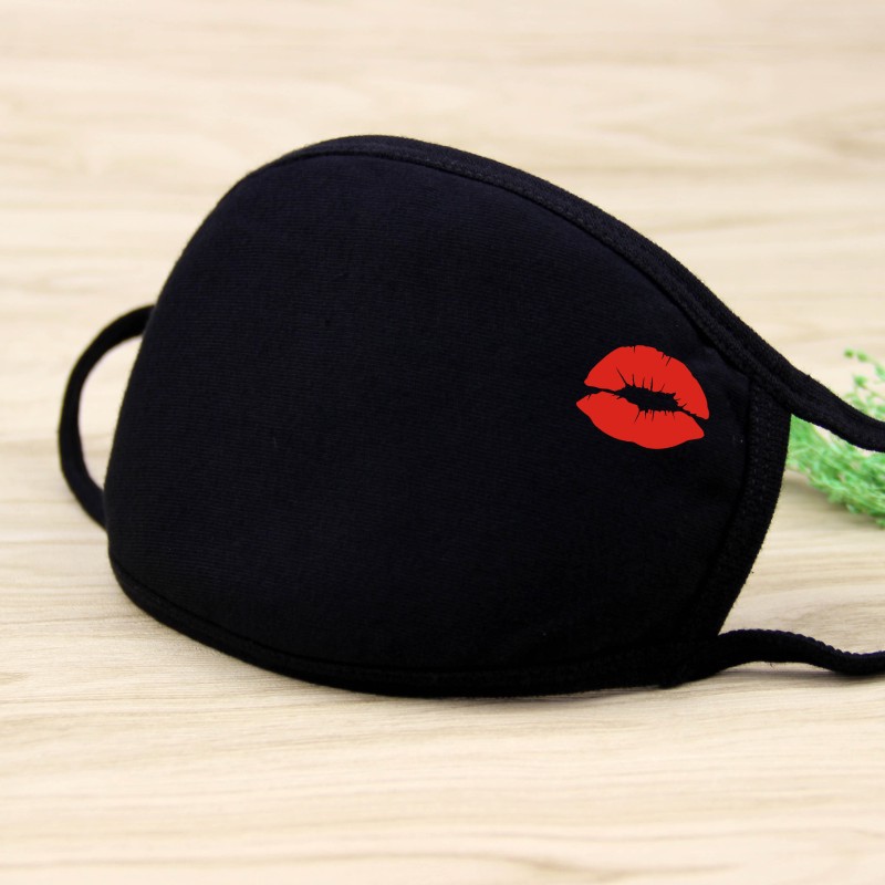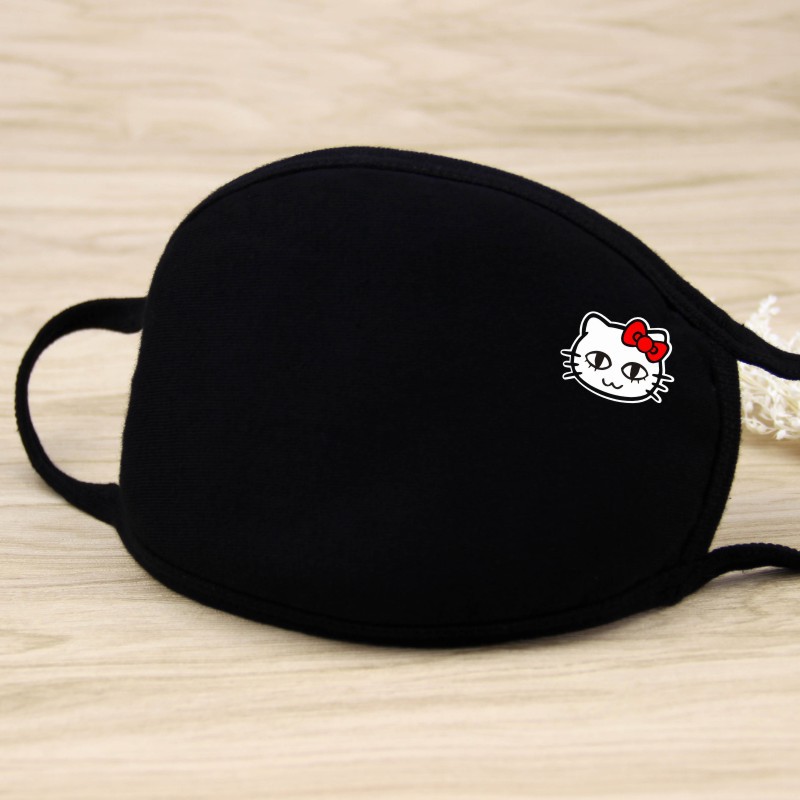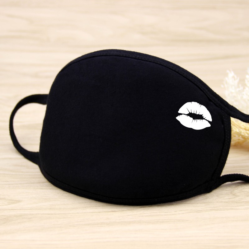 남녀공용 면 마스크, 한국 스타일 패션, 만화 프린트, 블랙, 겨울 보온, 방한, 사이클링, 방진, 성인용, 순면