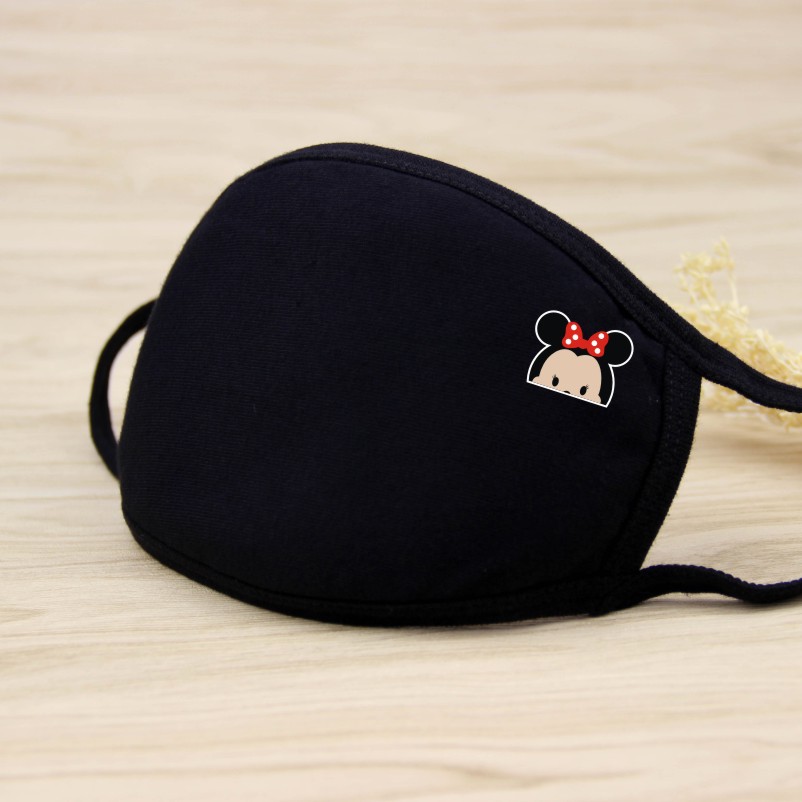 남녀공용 면 마스크, 한국 스타일 패션, 만화 프린트, 블랙, 겨울 보온, 방한, 사이클링, 방진, 성인용, 순면스토어 가기