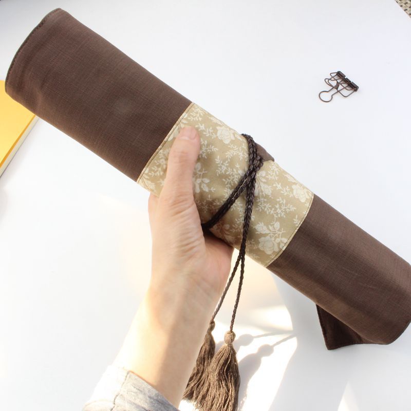 패브릭 연구 4 보물 브러시 롤 펜 가방 천 가방 브러시 보호 가장자리 서예 용품 대나무 펜 커튼스토어 가기