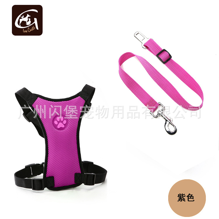 报价为网布胸背带+PP织带做的汽车安全带,适合贸易公司出口国外,适合所有的狗使用。