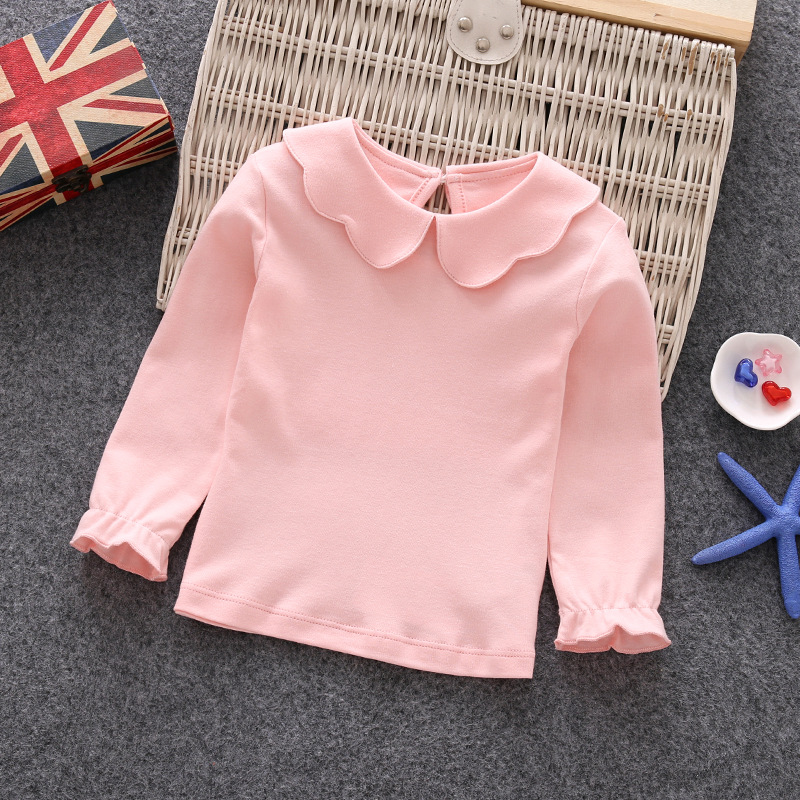 가을 새 아동복 여아 긴팔 베이스 셔츠 귀여운 인형 칼라 긴팔 탑 한국 긴팔 티셔츠