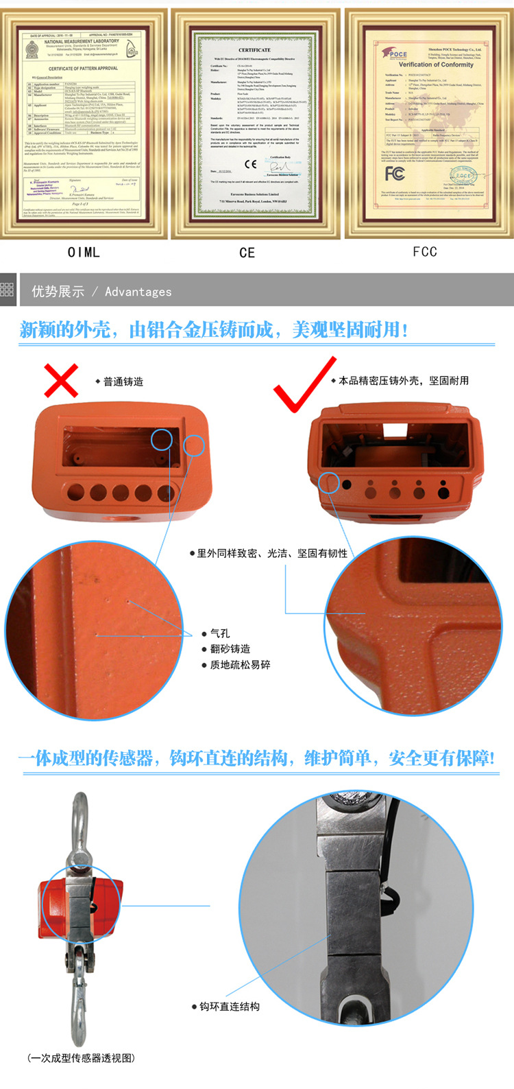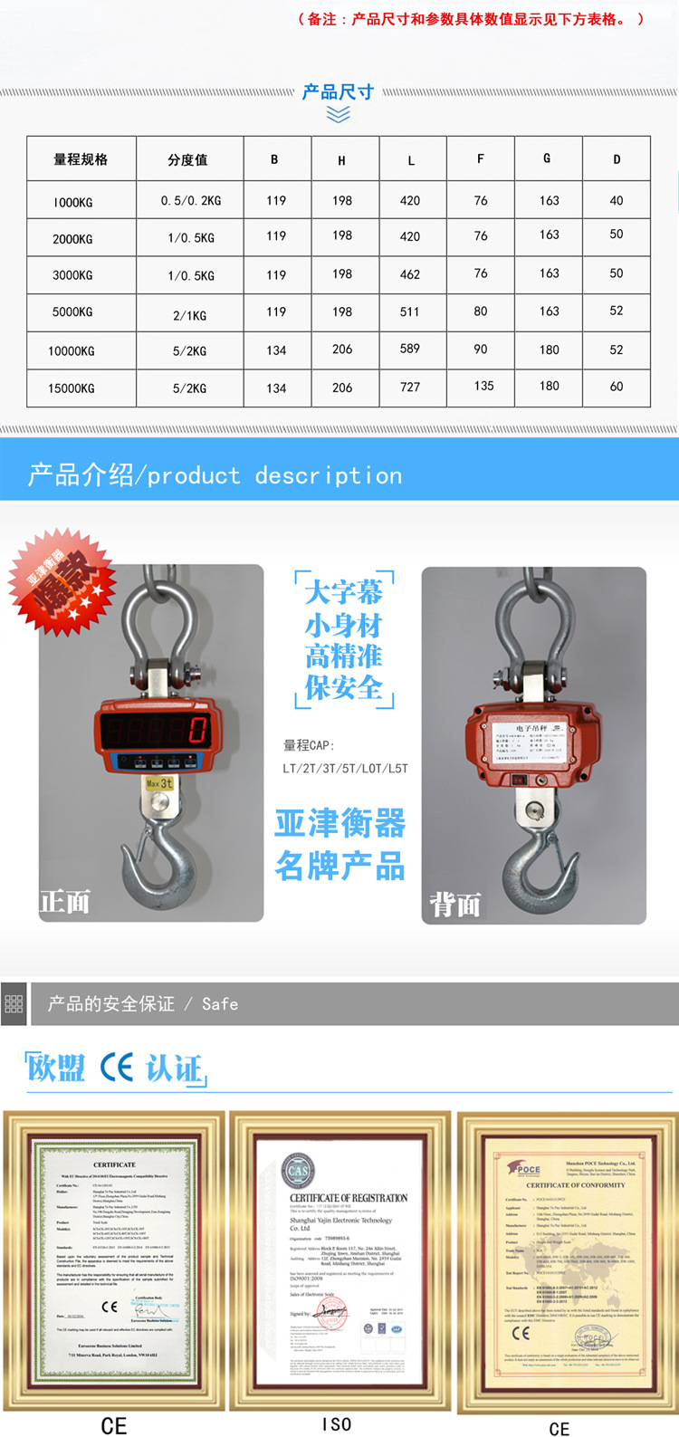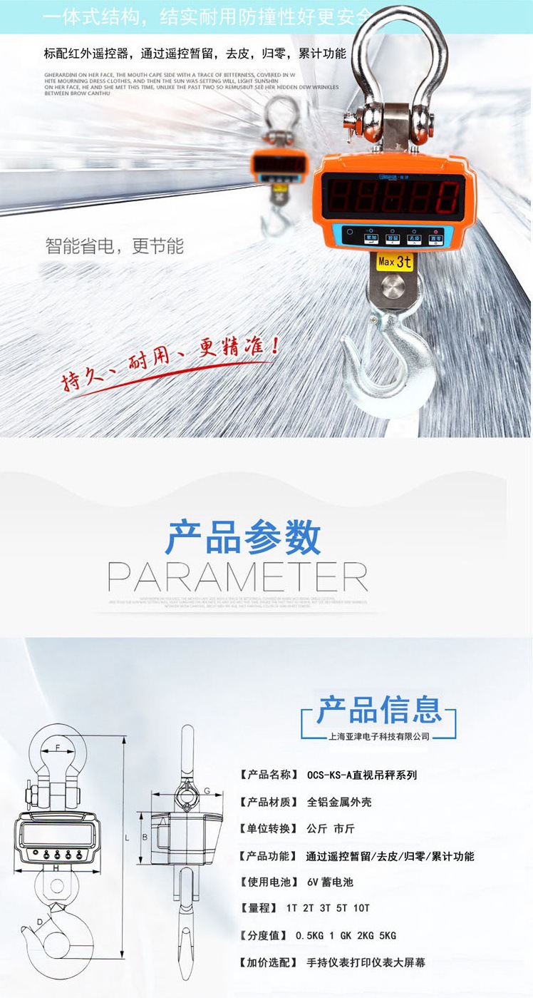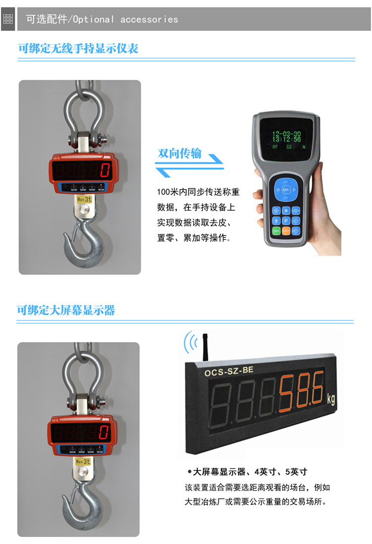 아진 OCS-5톤 직시형 전자 크레인 스케일 1톤 계량 3톤 10톤 무선 핸드헬드 계측기