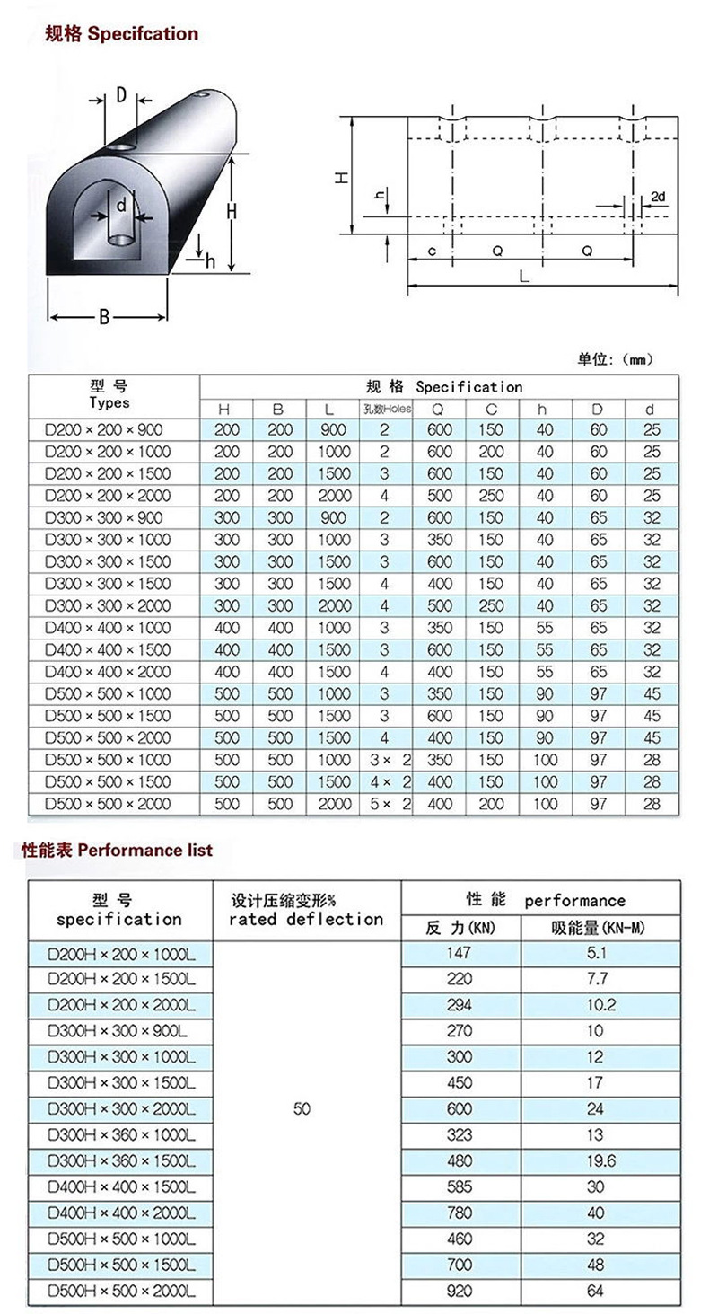 항구 고무 충격 흡수체 천연 고무 D형 시리즈 교각용 두꺼운 충돌 방지 고무 스트립, 부두 선박 전용 1000L