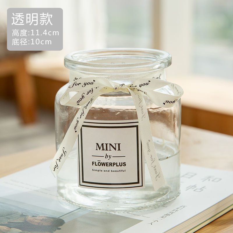 도매 Nordic 스타일 작은 꽃병 두꺼운 투명 유리 조리대 작은 꽃병 미니 영어 스티커 큰 오프닝스토어 가기