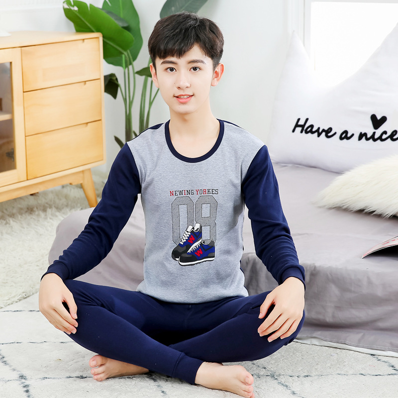 십대 중학교 속옷 소년 가을 옷과 바지 세트 어린이 중간 및 큰 어린이 얇은 소년 면 스웨터 세트스토어 가기