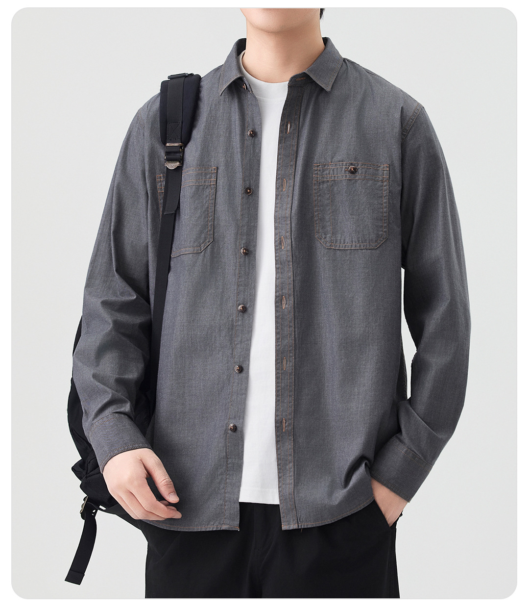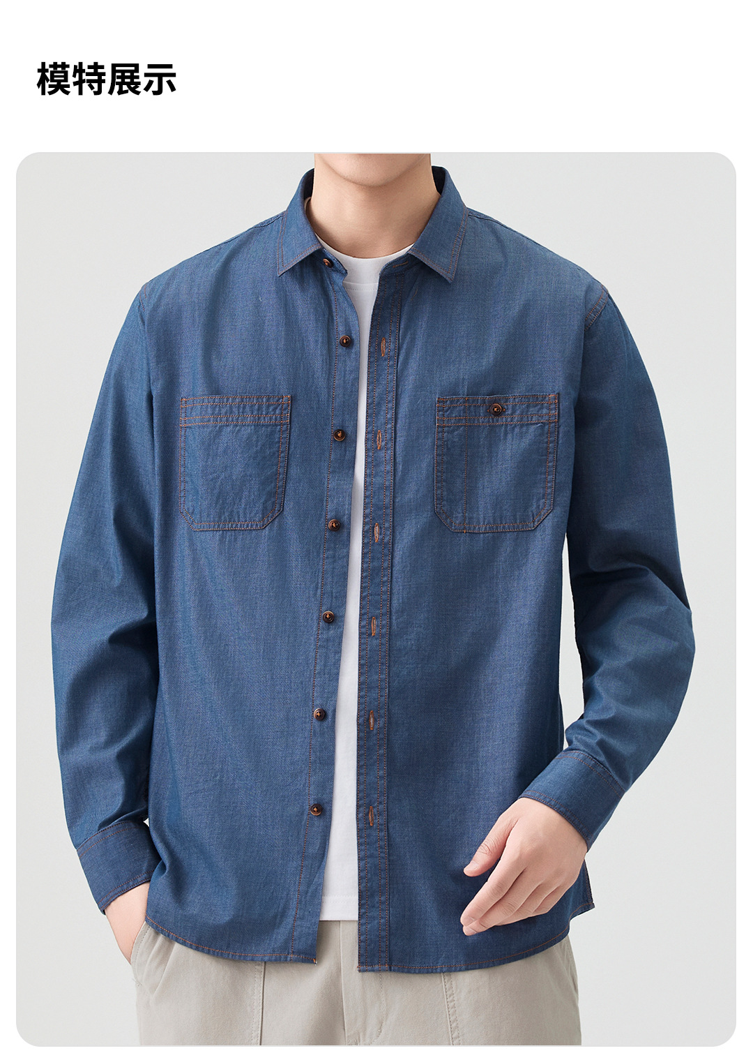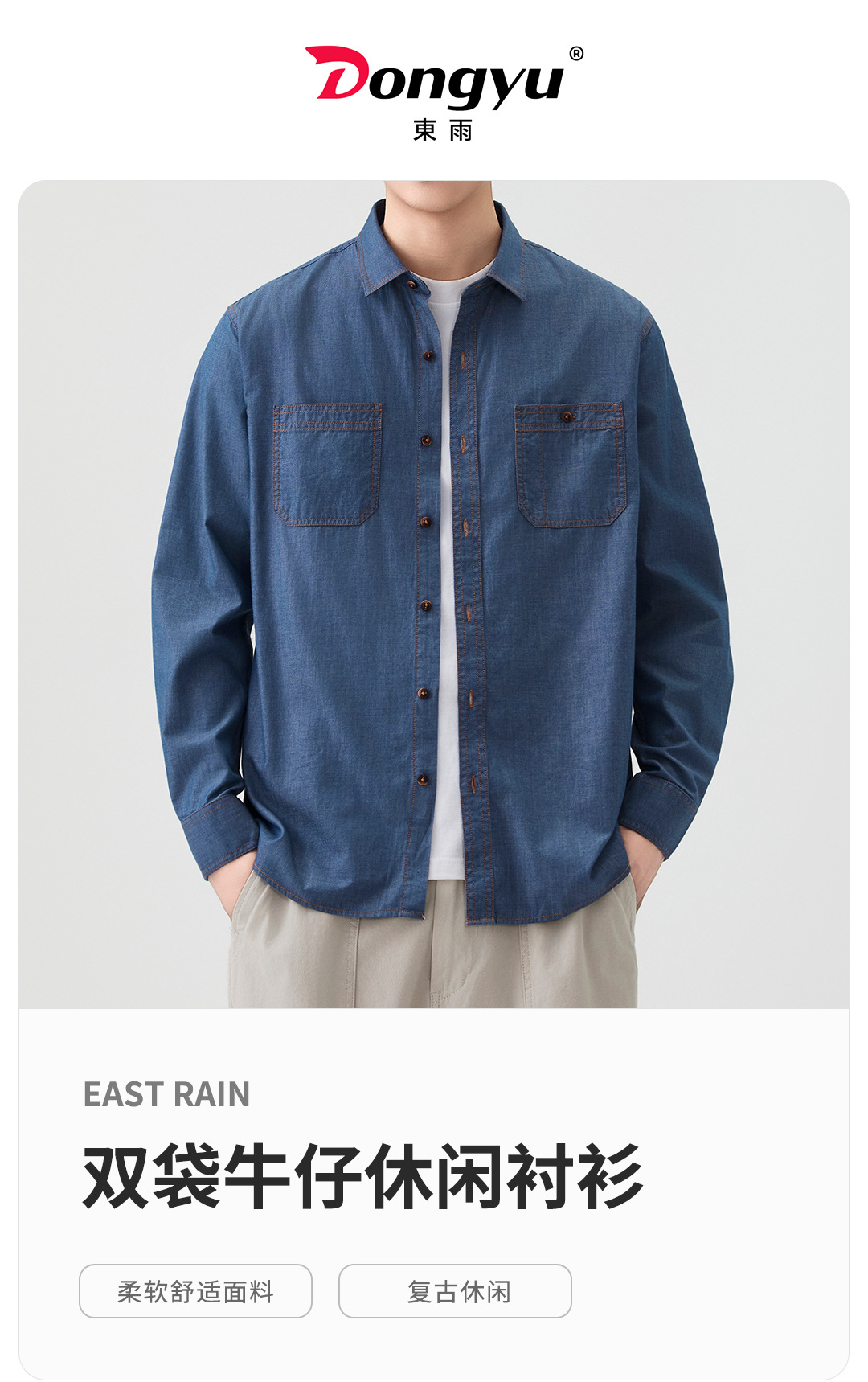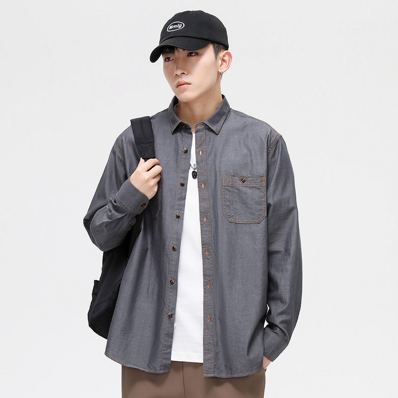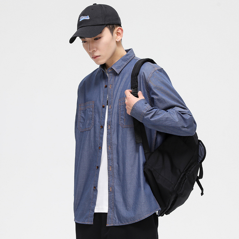 동유 셔츠 남성용 봄 가을 데님 셔츠 남성 캐주얼 데님풍 셔츠 고급 패션 남성복 상의 도매스토어 가기
