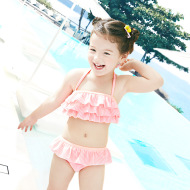 어린이 수영복 아기 귀여운 소녀 작은 중년 어린이 붉은 꽃 자수 조끼 케이크 스커트 분할 수영복
