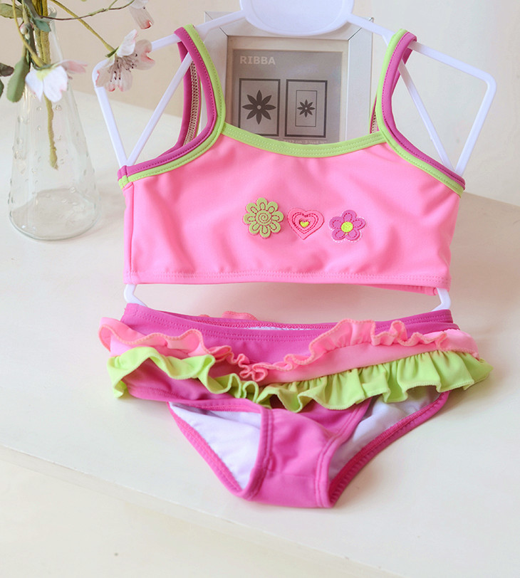 어린이 수영복 아기 귀여운 소녀 작은 중년 어린이 붉은 꽃 자수 조끼 케이크 스커트 분할 수영복스토어 가기