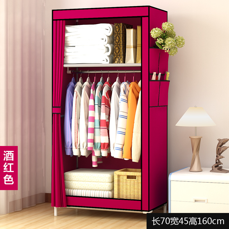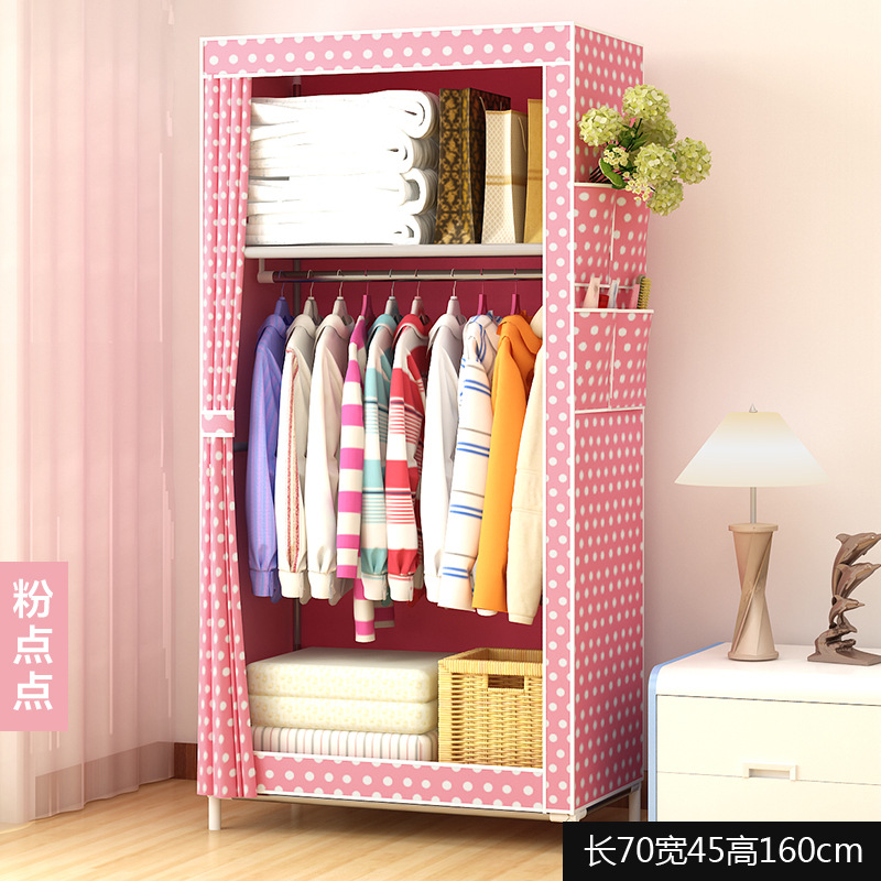 간단한 옷장 학생 기숙사 단일 소형 옷장 보관 및 보관 캐비닛 경제적 인 강철 파이프 굵은 천 옷장스토어 가기
