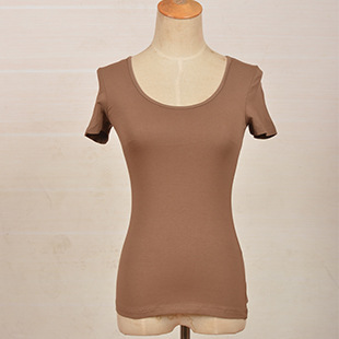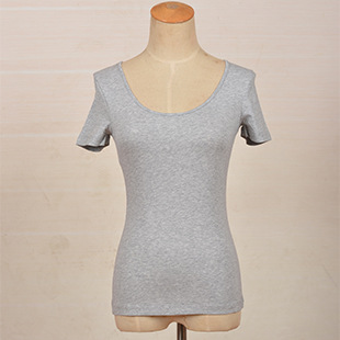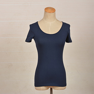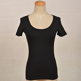 Feiluoyi Lan 2022 여름 심플 솔리드 컬러 라운드 넥 섹시 로우 컷 반팔 티셔츠 여성용 슬림핏 슬리밍 코튼 스몰 셔츠스토어 가기