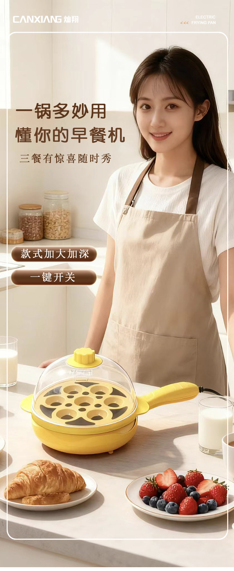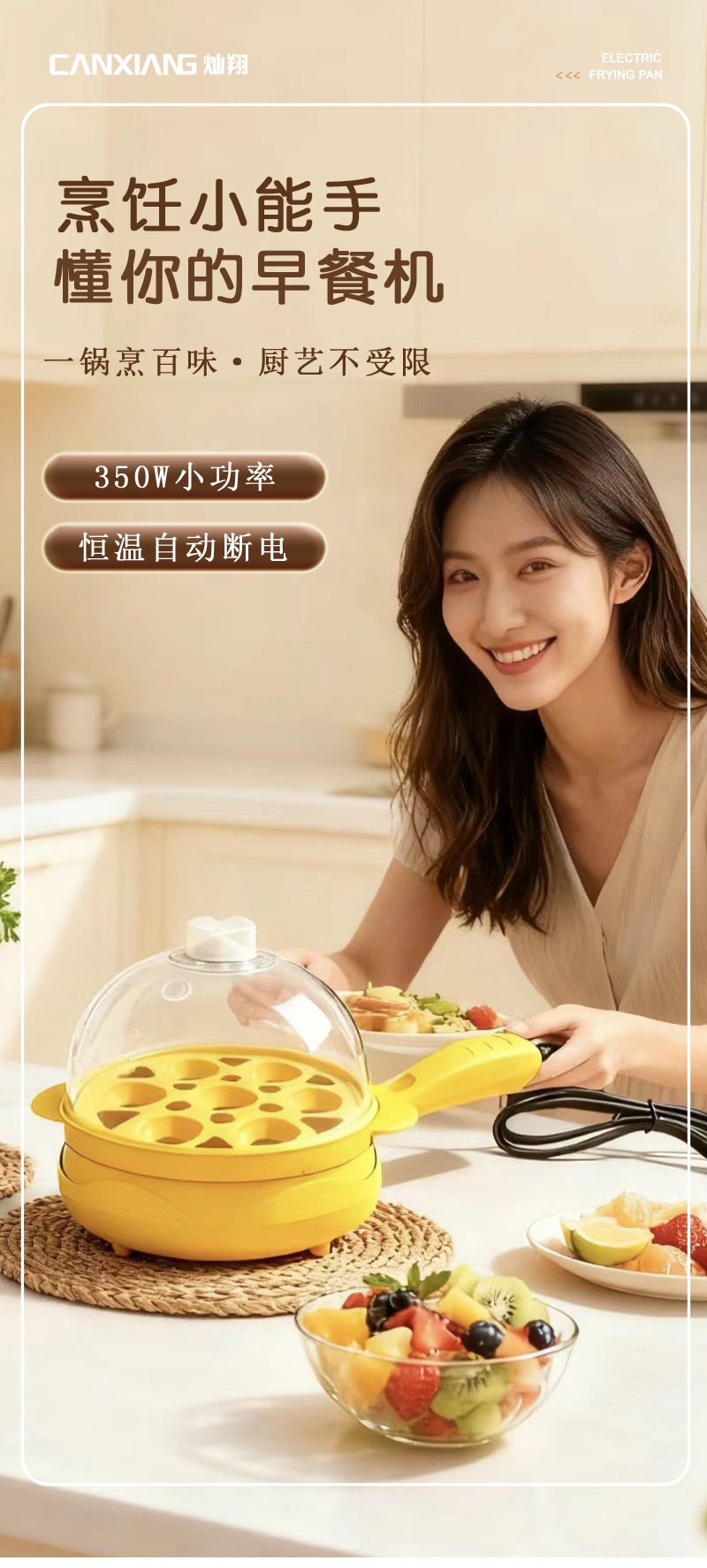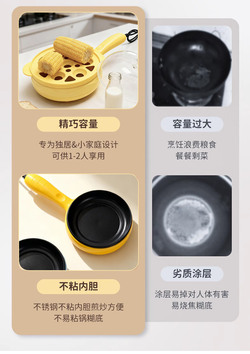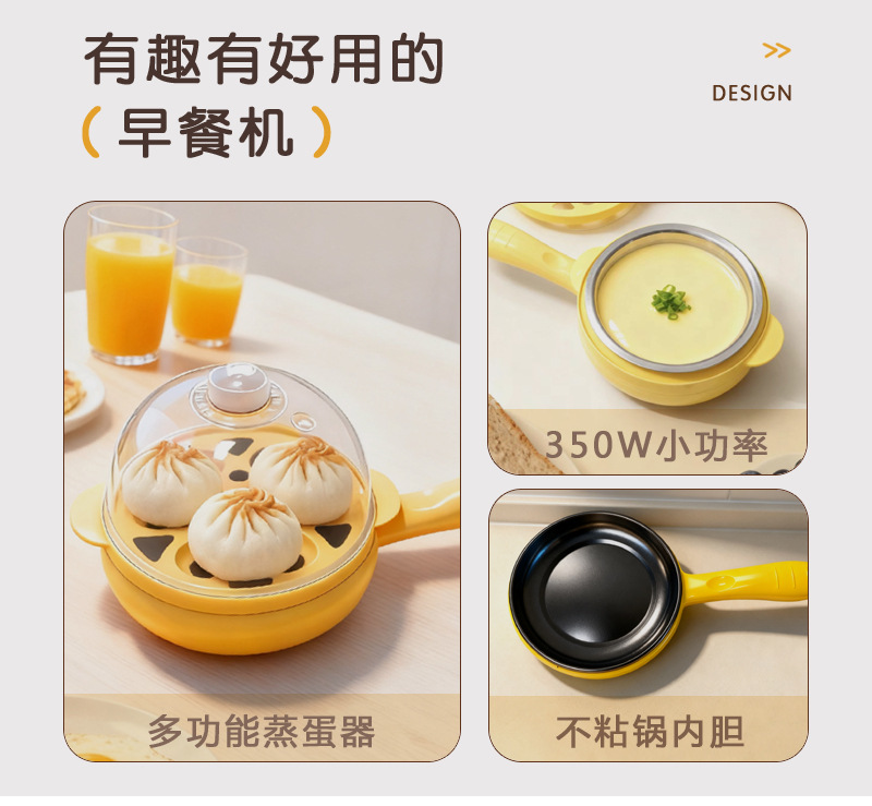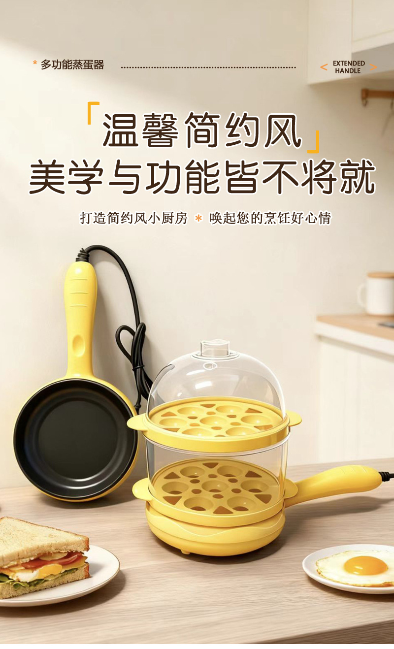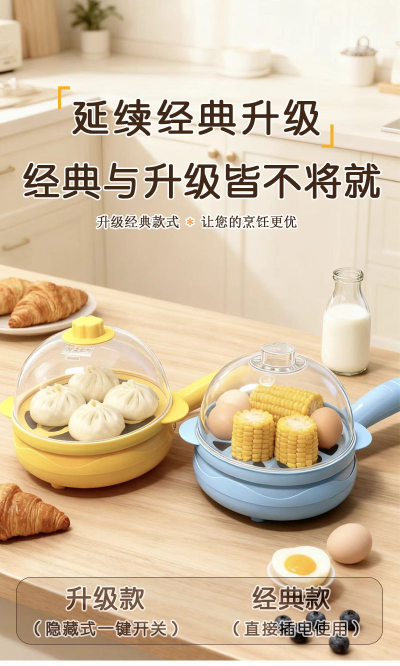 지능형 아침 식사 자동 파워 오프 달걀 프라이머 전기 계란 프라이어 더블 레이어 미니 전기 프라이어 타이밍