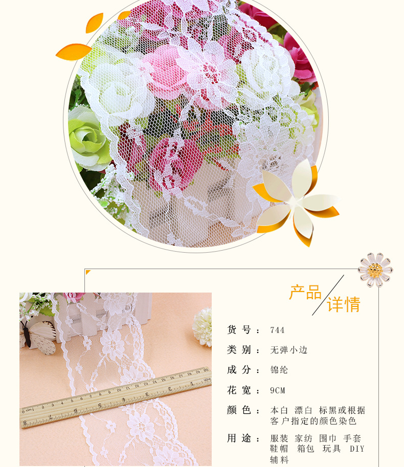 공장 장기 재고 공급 침대 시트 이불 커버 액세서리 레이스 9cm 비 탄성 레이스