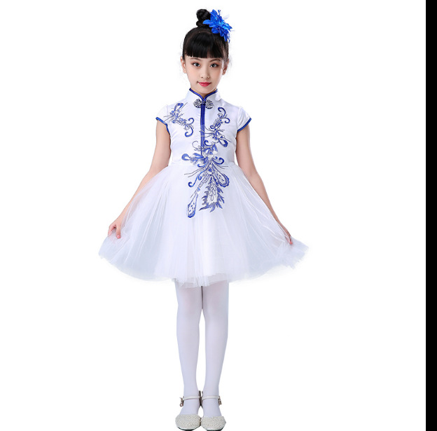 어린이 및 학생 합창 의류 파란색과 흰색 도자기 암송 의상 6 월 1 일 공연 의상 초등학생 합창 의상스토어 가기