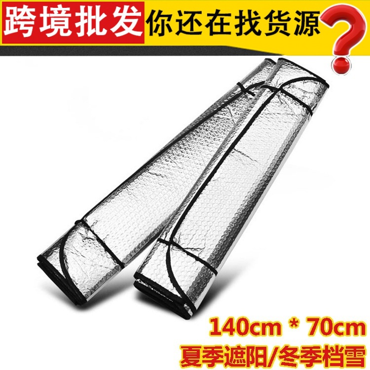 本精美可折叠汽车遮阳膜,由优质的银白色反光金属膜精制而成,十分轻巧。可折叠设计,叠起时只有十多厘米宽(70厘米长),可以随意放在车内。完全打开时面积达140*70CM厘米,且它上面有两个吸盘,可以很方便地固定在汽车的前后挡风玻璃上。