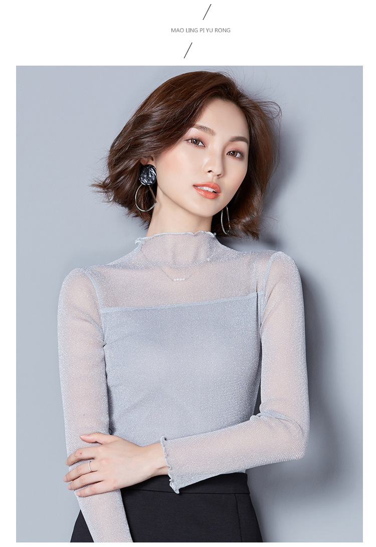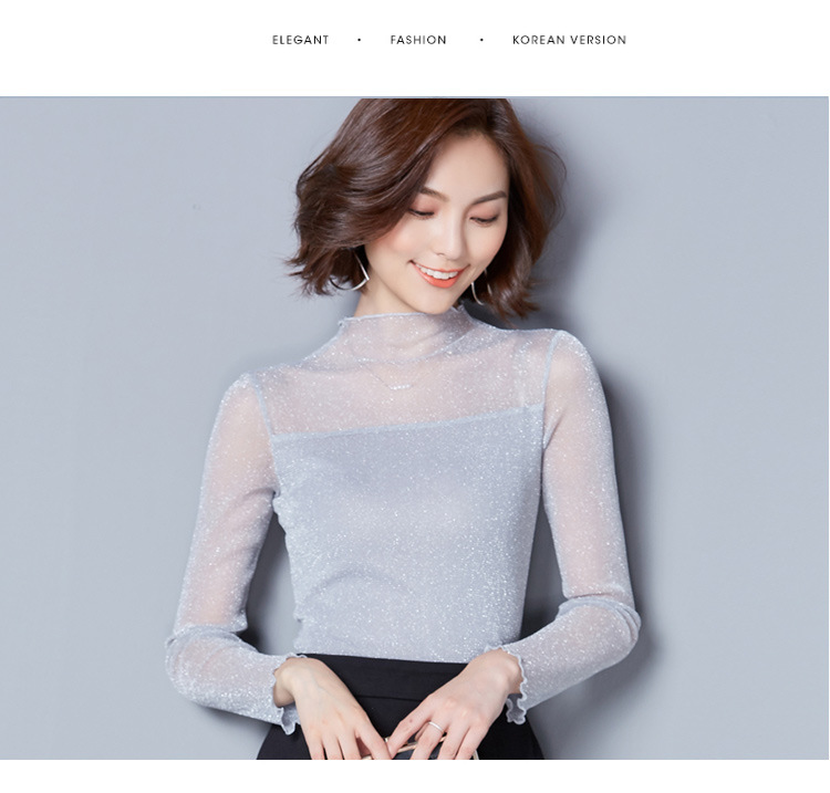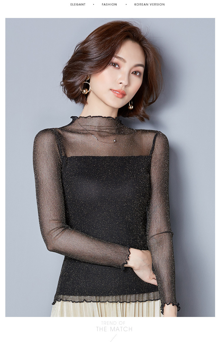 2025 봄, 가을 한국 스타일 여성용 골드 및 실버 레이스 메쉬 긴팔 탑 다용도스토어 가기