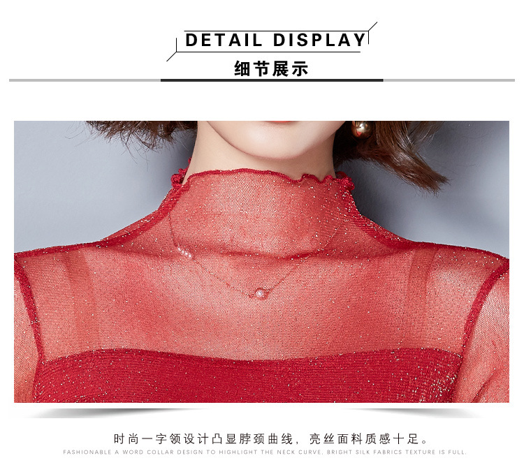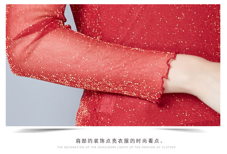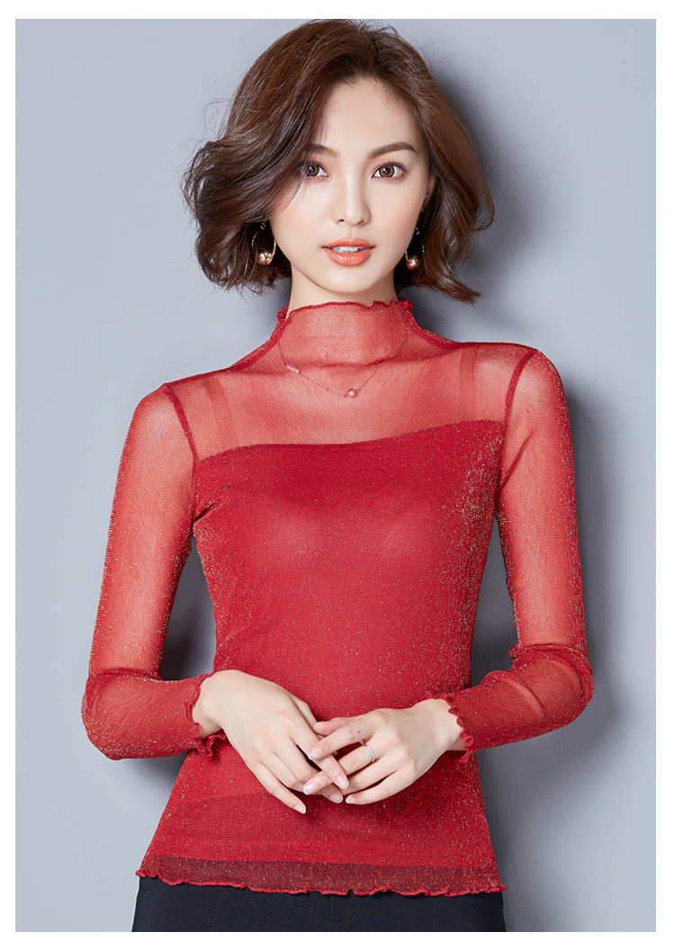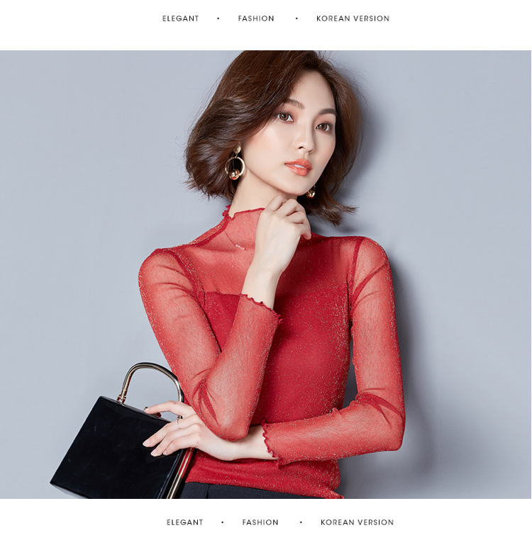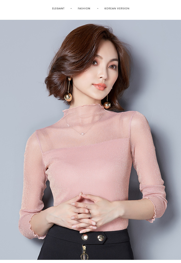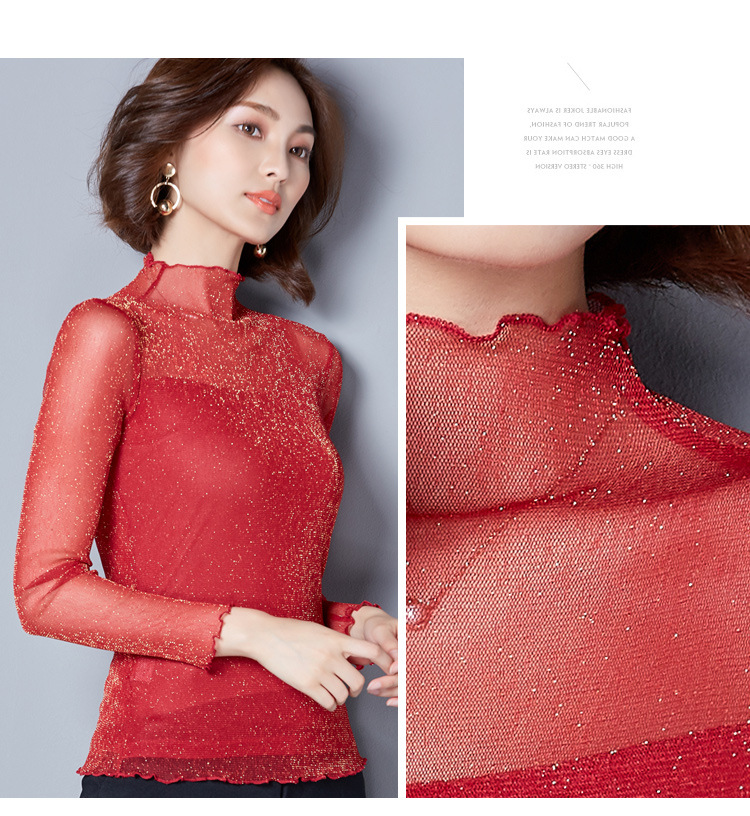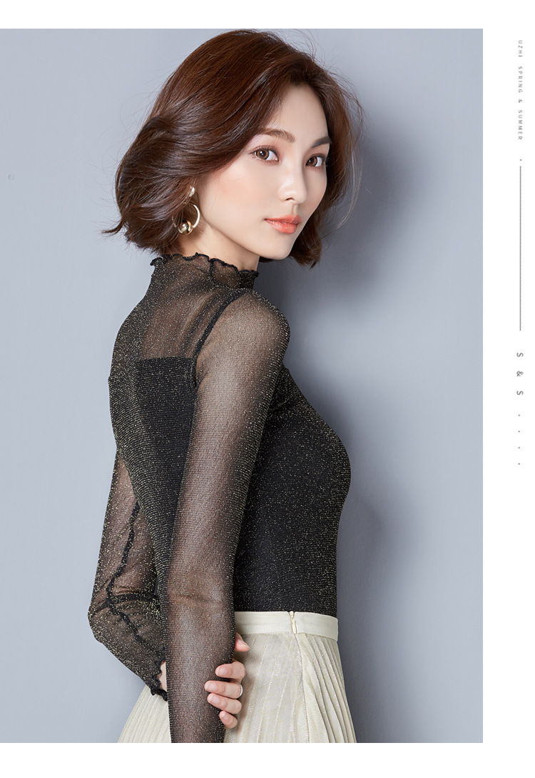2025 봄, 가을 한국 스타일 여성용 골드 및 실버 레이스 메쉬 긴팔 탑 다용도