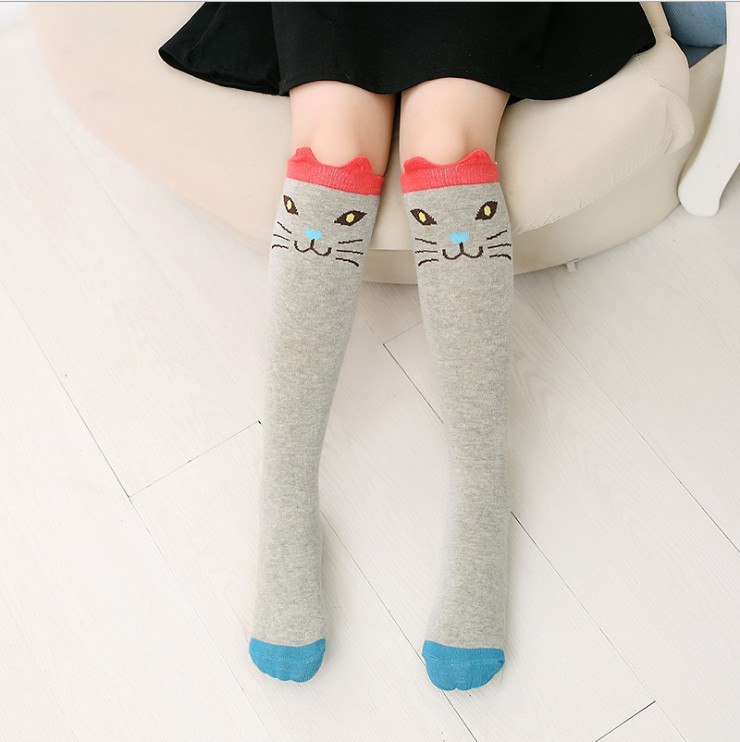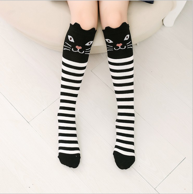 공장 도매 봄과 가을 어린이 스타킹 외국 무역 국경 면 직선 만화 소녀 아기 양말 무릎 양말